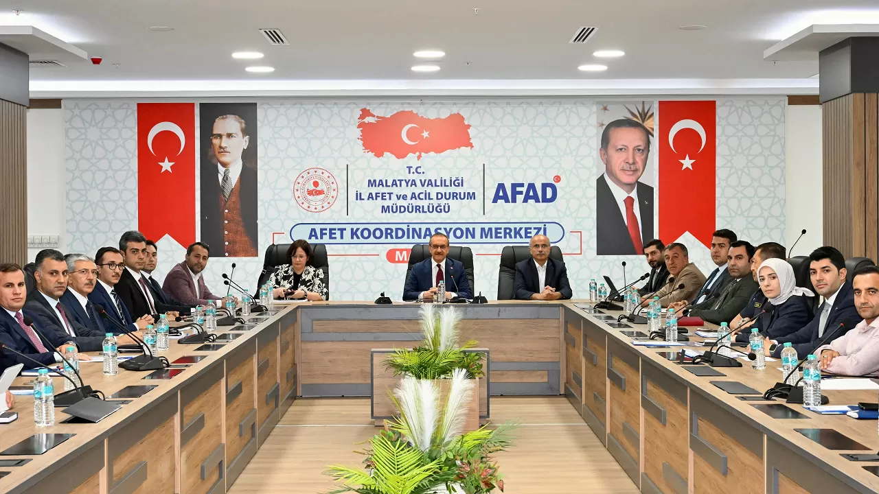 Malatya Valisi Seddar Yavuz'un başkanlığında AFAD İl Müdürlüğünde gerçekleştirilen toplantıda, inşa edilen kalıcı konutlar ve iş yerleri hakkında istişarelerde bulunuldu.