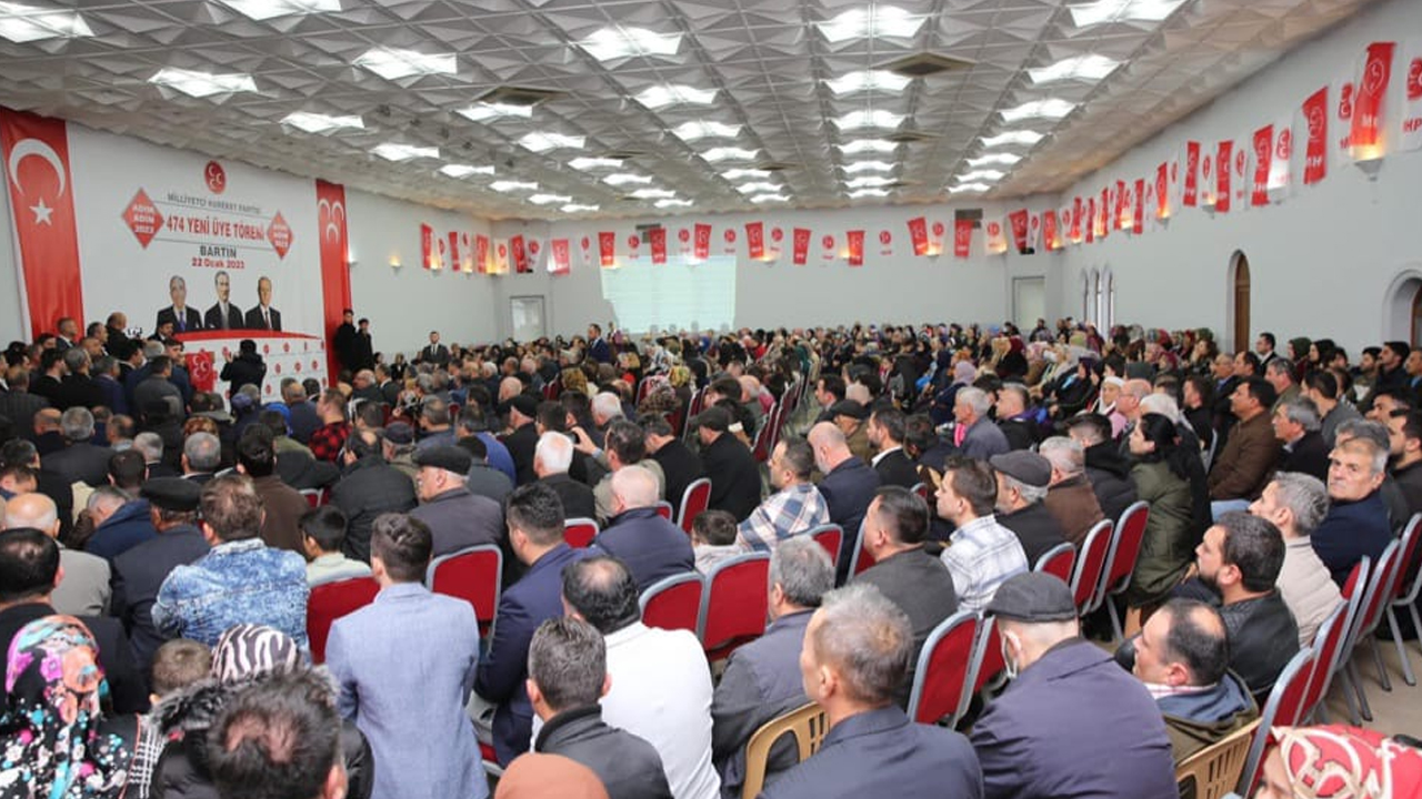 Bartın'da çeşitli partilerden ve vatandaşlardan 474 kişi, düzenlenen törenle MHP’ye katıldı. Bartın Belediye Başkanı Cemal Akın, Bartın sosyal tesislerinde düzenlenen törende partiye katılanlara rozetlerini taktı.