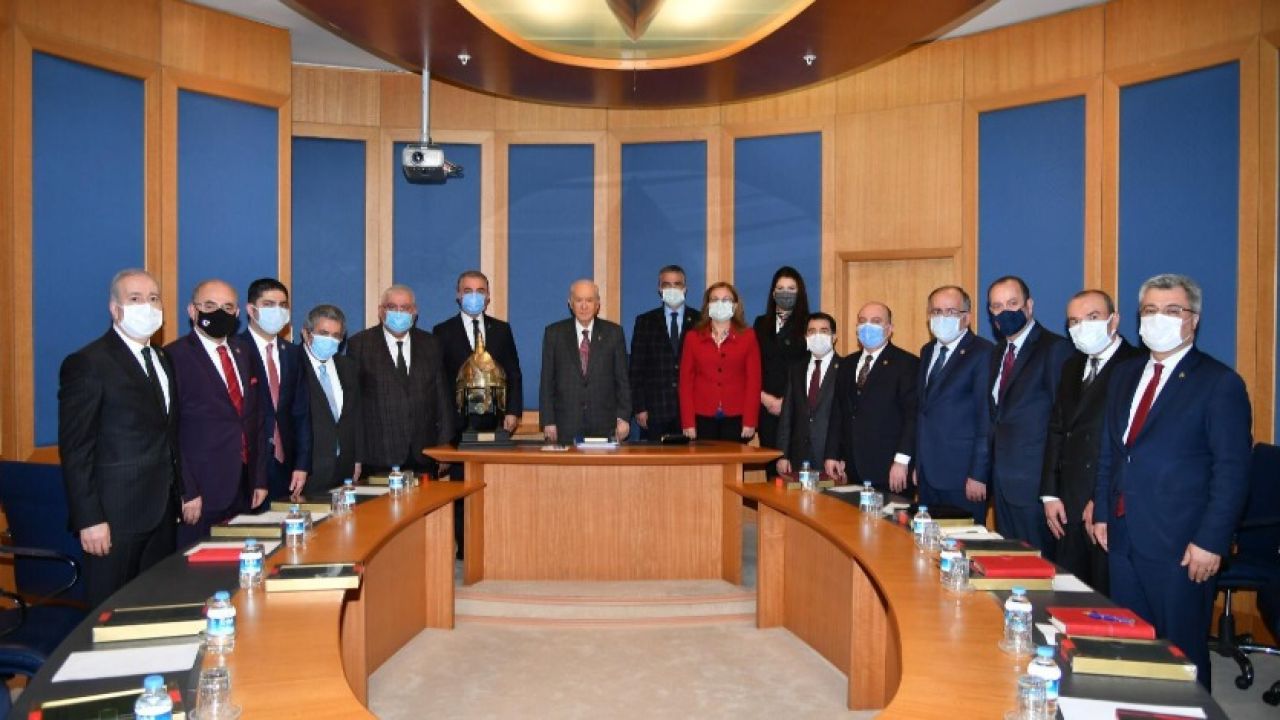 MHP’nin Twitter hesabından yapılan açıklamada, ‘’Genel Başkanımız Sayın Devlet BAHÇELİ'nin Başkanlığında 13. Olağan Büyük Kurultay Sonrası ilk Başkanlık Divanı Toplantısı gerçekleştirildi.’’ ifadeleri paylaşıldı.