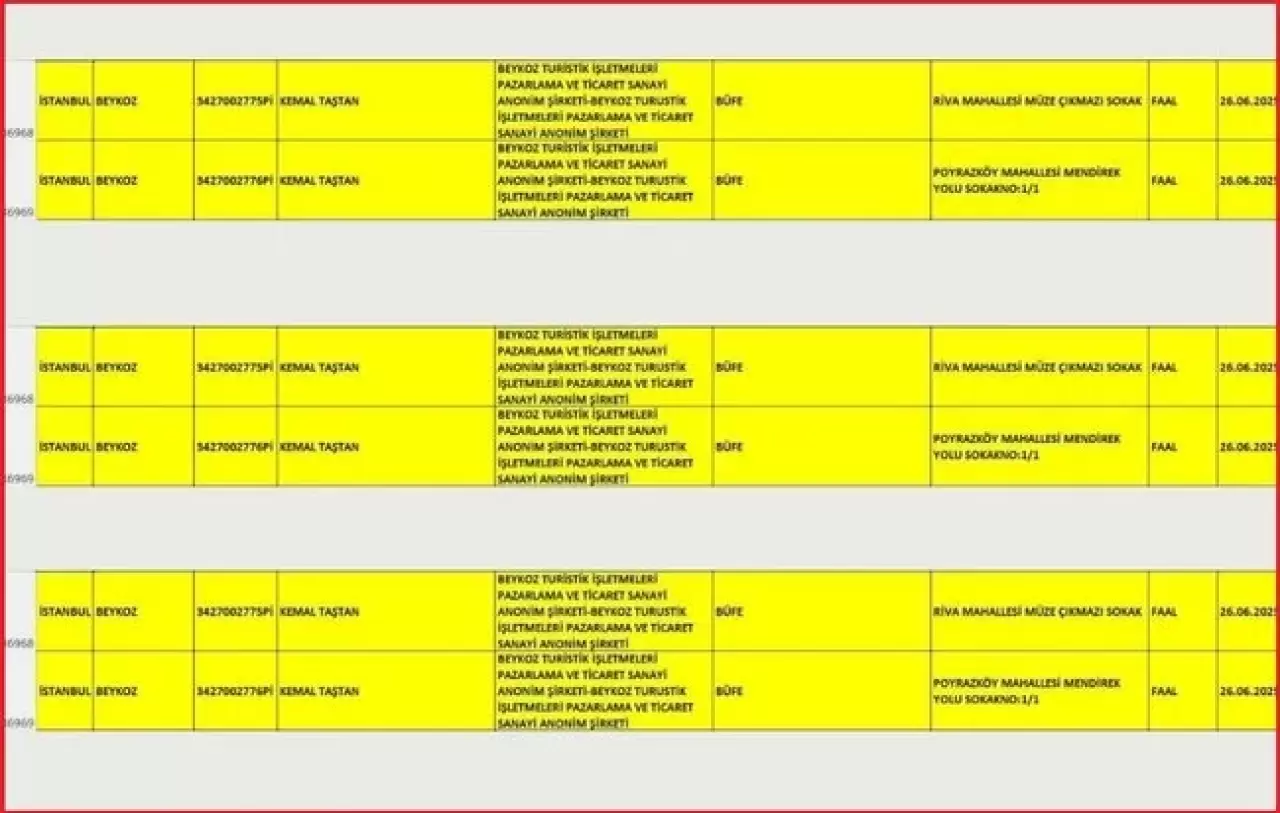 Ruhsatlardan birinin Poyrazköy Mahallesi Mendirek Yolu Sokak No:1/1 adresinde, Beykoz Belediyesi'ne ait Zabıta Kontrol Merkezi'nin bulunduğu nokta olduğu ortaya çıktı. Bir diğer ruhsat ise İstanbulluların yaz aylarında yoğunlukla tercih ettiği plajlardan biri olan Riva Mahallesi Müze Çıkmazı Sokak'taki 2. Koy Plajı'na düzenlendi.