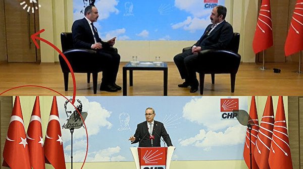 CHP Sözcüsü Faik Öztrak, sık sık basın toplantısı düzenliyor. Elçi'nin röportaj verdiği basın salonunda Türk bayrakları ve CHP bayrakları her konuşmada hazır bulunuyor.