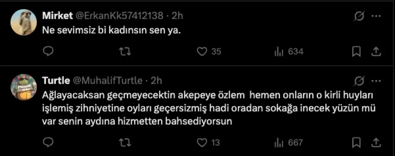 CHP'lilerin baskı ve tehditleri troller aracılığıyla partiden ayrıldıktan sonra da devam etti. Özlem Çerçioğlu'nun sosyal medya hesaplarının altına iğrenç mesajlarla saldıran CHP'liler şu paylaşımlarda bulunmuştu.