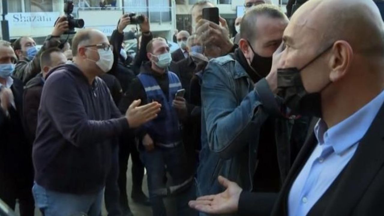 Kılıçdaroğlu'nun önünde gerçekleşen atışma sonrası Başkan Soyer vatandaşa cevap vermeden uzaklaştı.