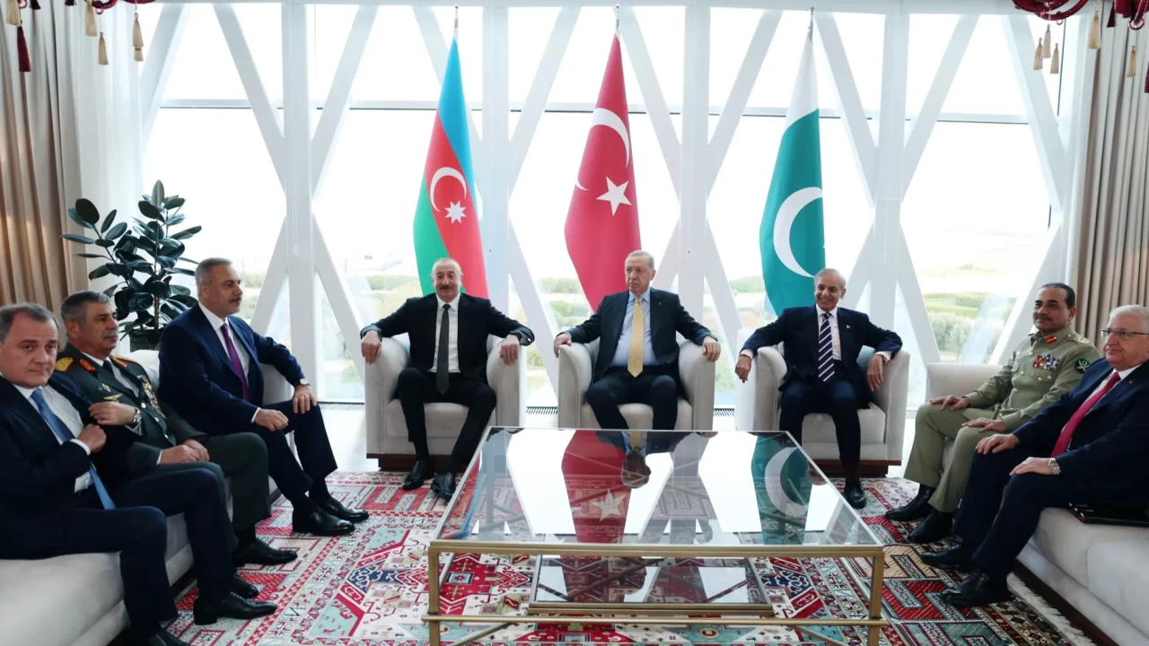 Cumhurbaşkanı Recep Tayyip Erdoğan, '8 Kasım Zafer Günü' dolayısıyla Azerbaycan'ın başkenti Bakü'de düzenlenen tören kapsamında, Azerbaycan Cumhurbaşkanı İlham Aliyev ve Pakistan Başbakanı Şahbaz Şerif ile görüştü.