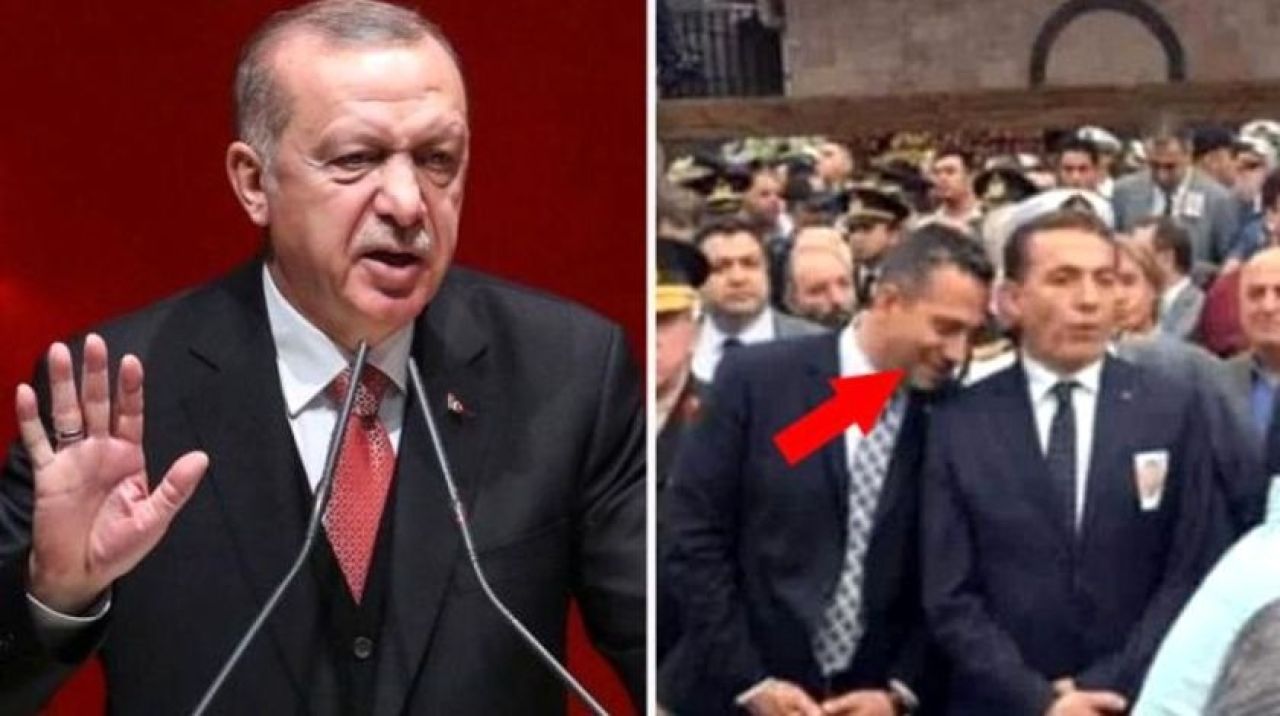 Bu fotoğraf üzerinden CHP'li vekile yüklenen Erdoğan, "Gördünüz, cenaze namazında bile bu ahlaksız, terbiyesiz adam yanında birisiyle konuşurken pişmiş kelle gibi sırıtıyor" dedi.