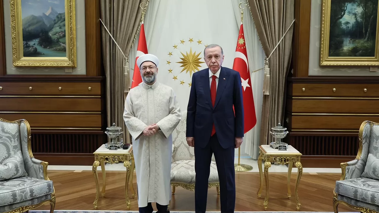 Cumhurbaşkanı Erdoğan, Diyanet İşleri Başkanı Erbaş'ı Cumhurbaşkanlığı Külliyesinde kabul etti.