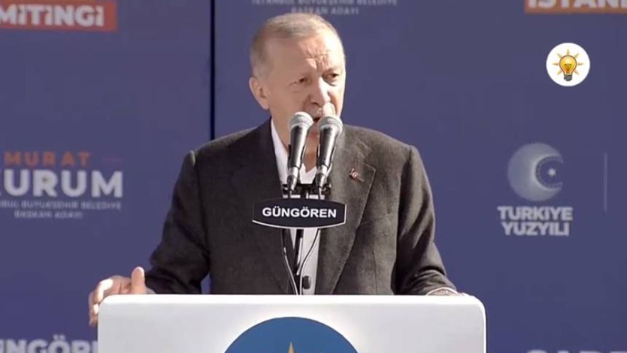 Erdoğan, “Güngören geçtiğimiz yıl yapılan 14-28 Mayıs seçimlerinde Cumhur İttifakı’na milletvekilliğinde yüzde 52, Cumhurbaşkanlığında yüzde 54 oranıyla destek verdi. Bunun için her birinize şükranlarımı sunuyorum. Güngören tercihini otuz yılı aşkın süredir hep eser ve hizmet siyasetinden yana kullanmıştır. İnşallah yarınki seçimlerde de rekor bir oyla Güngören'in tercihi yine AK Parti yine Cumhur İttifakı olacaktır. Buna hazır mıyız? Yarın akşama kadar bu çalışmalarımızı sürdürüyor muyuz? Burası aslında geçmişi bir insan ömrünü ancak bulan bir ilçemiz. Buna rağmen Güngören, doğusundaki sanayi tesisleri ve batısındaki yerleşim yerleriyle İstanbul'un önemli merkezleri arasına girmeyi başardı. Güngören yaşadığı hızlı ve kontrolsüz büyümenin mirası olan depreme dayanıksız ve düşük standartlı konut stokunu dönüştürmeye başladı. İnşallah Murat Kurum kardeşimizin büyükşehirde vereceği destekle bu süreç daha da hızlanacak. Bilim adamlarının sürekli uyardığı deprem kapımızı çalmadan tüm ilçeleriyle İstanbul'umuzu depreme daha hazır hale getireceğiz. Sadece belediyemiz değil tabii ki bizler de merkezi yönetim olarak her zaman İstanbul'umuzun yanında olmaya devam edeceğiz. Daha bir sene önce asrın felaketinde 53 binden fazla canımızı toprağa vermiş bir ülke olarak deprem tehdidini yok sayamayız. Gece Elazığ'da yaşanan 4.7 büyüklüğündeki şiddetli sarsıntı, bize bunu bir kez daha hatırlattı. Buradan tekrar geçmiş olsun diyorum. Deprem konusuna siyaset üstü bir mesele olarak bakmamız gerekiyor. Yarısı bizden kampanyasına yenilerini ekleyerek İstanbul'umuzun daha güvenli, daha dirençli hale gelmesini sağlayacağız" dedi.