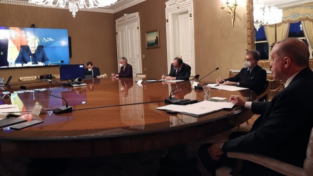 Cumhurbaşkanı Erdoğan, Almanya Başbakanı Merkel ile video konferans aracılığıyla görüştü.