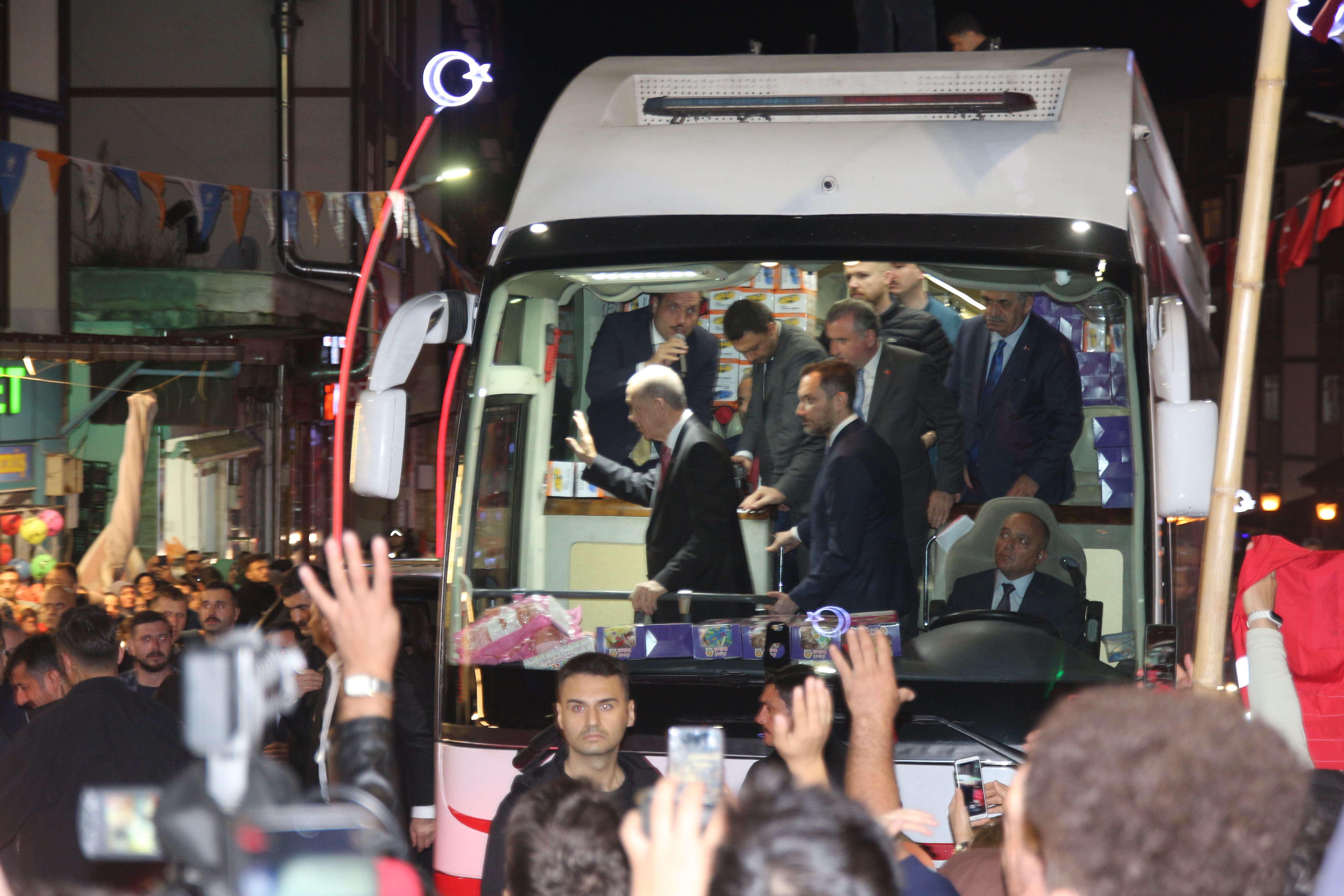 “Yarın toplu açılışları gerçekleştirmek için buradayız” diyen Erdoğan, “Hem toplu açılışları gerçekleştireceğiz hem de Rize’deki kentsel dönüşümü yerinde göreyim istedim. Ayder’deki dönüşümü yerinde göreyim istedim. Bütün bunları inşallah yerinde görerek adımlarımızı atacağız. Sizlerde bu noktada 5-6 ay sonra malum yerel seçimler var, belediye seçimleri var. Yerel seçimlerde de inşallah başta Rize merkez olmak üzere ev ev dolaşarak ilçelerimize de inşallah partimize kazandırmanızı istiyorum. Malum son seçimlerde milletvekili sayımız da bir düşüş yaşadık. Herhalde yerel seçimlerde aynı düşüşü yaşamayız. Bunun için çok farklı bir gayret gerekecek bu gayretlerle birlikte inşallah Rize ve ilçelerinden çok güçlü bir ses çıkaralım istiyorum. Yarın inşallah Rize merkezde kentsel dönüşüm onları yerinde görelim istiyorum. Daha sonra inşallah Ayder’i yerinde bir görelim istiyorum. Bunlarla birlikte eksiklerimizi nasıl gideririz inşallah bunların da planlamasını yapacağız” ifadelerini kullandı.