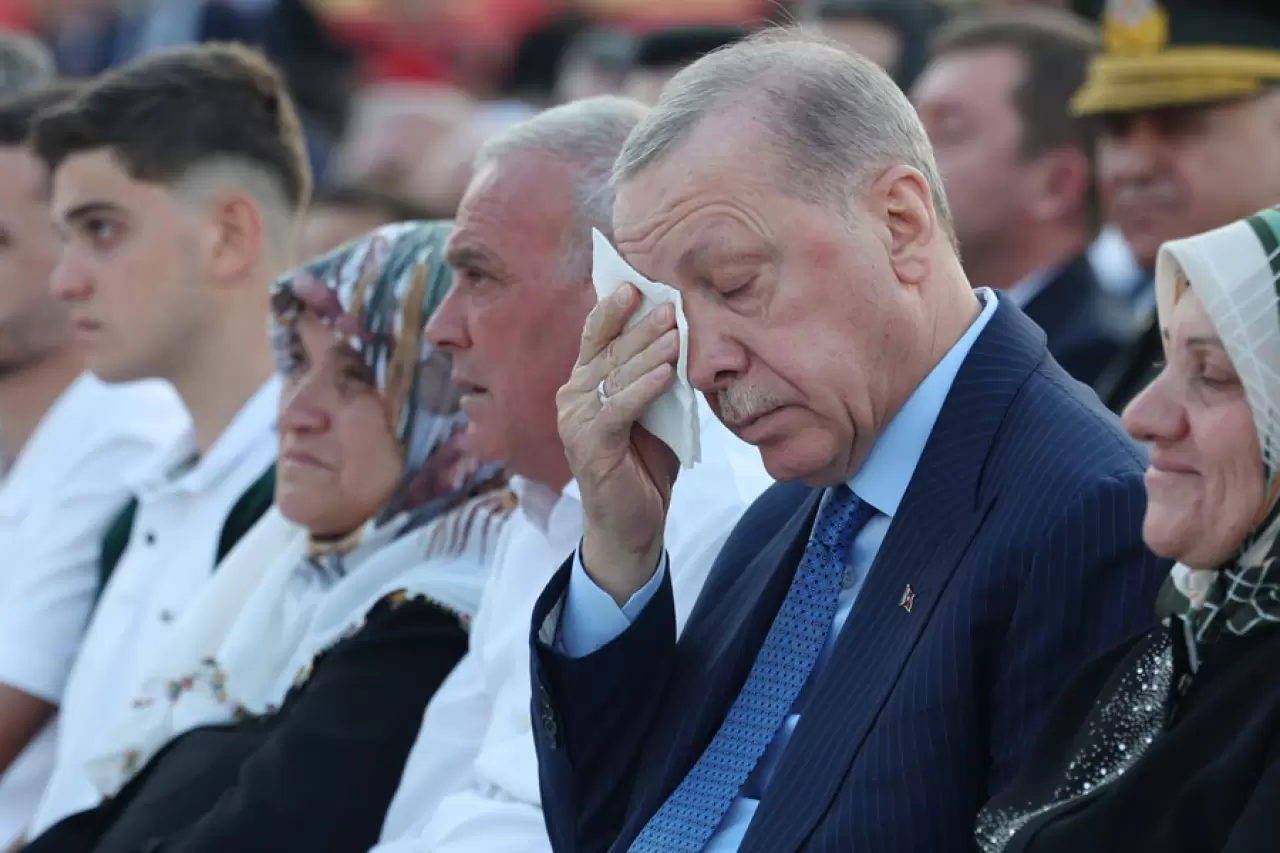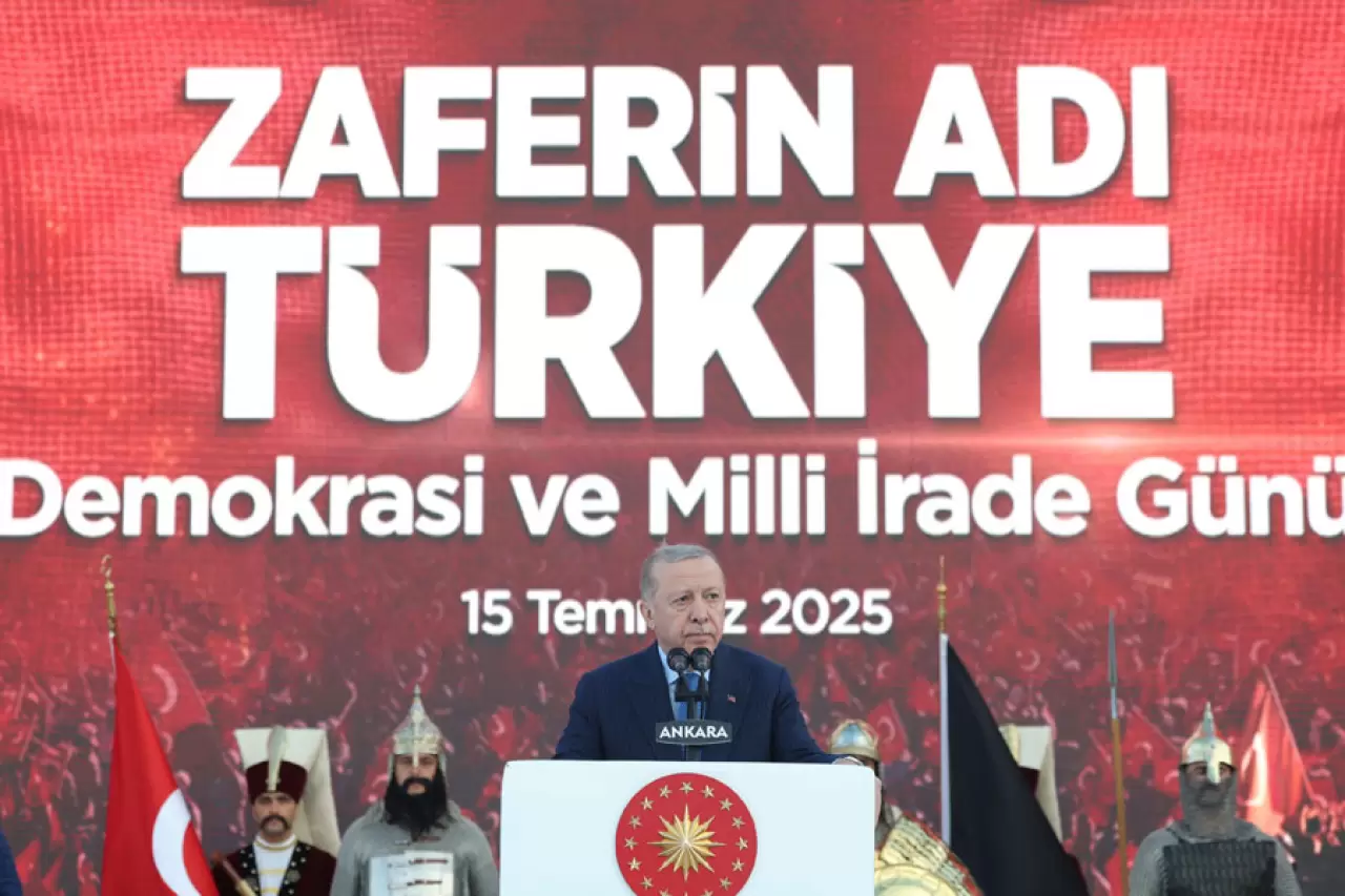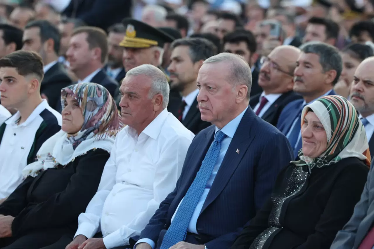 Erdoğan, FETÖ'nün 15 Temmuz 2016'daki darbe girişiminin, Türk milletinin bin yıllık tarihinde yaşadığı en ağır ihanetlerden biri olduğunu vurgulayarak, "Onlar Türkiye'nin Akıncı Beyleriydi. Selam olsun bu milletin Akıncı Beylerine. Can feda olsun kahraman polisin özel harekat erlerine. Kahraman şehitlerimizin kabirleri pür nur olsun. Rabbim onları Peygamber Efendimiz'e inşallah komşu eylesin. Malumunuz şehit şahit olan hazır bulunan demektir. Evet onlar şu anda bizleri görüyor. Bizleri duyuyor. Rabbimizin lütuf ve keremine de inşallah mazhar oluyorlar. Peygamberlikten sonraki en yüce makamda gönül huzuruyla oturuyorlar. Cenabı Mevla bizleri şehitlerimizin şefaatine nail eylesin. Rabbim sizlerin de ayağınıza taş değdirmesin. Sizleri daima muzaffer ve muvaffak eylesin diyorum. 15 Temmuz 2016'da bu topraklardaki bin yıllık tarihimizin en ağır ihanetlerinden birine uğradık. Gazi Meclisimiz, Cumhurbaşkanlığı Külliyemiz, Genelkurmay Başkanlığımız, Ankara Emniyetimiz, TRT ve TÜRKSAT'ın yanı sıra Gölbaşı'ndaki Özel Harekat Başkanlığımız da saldırıya maruz kaldı" diye konuştu.