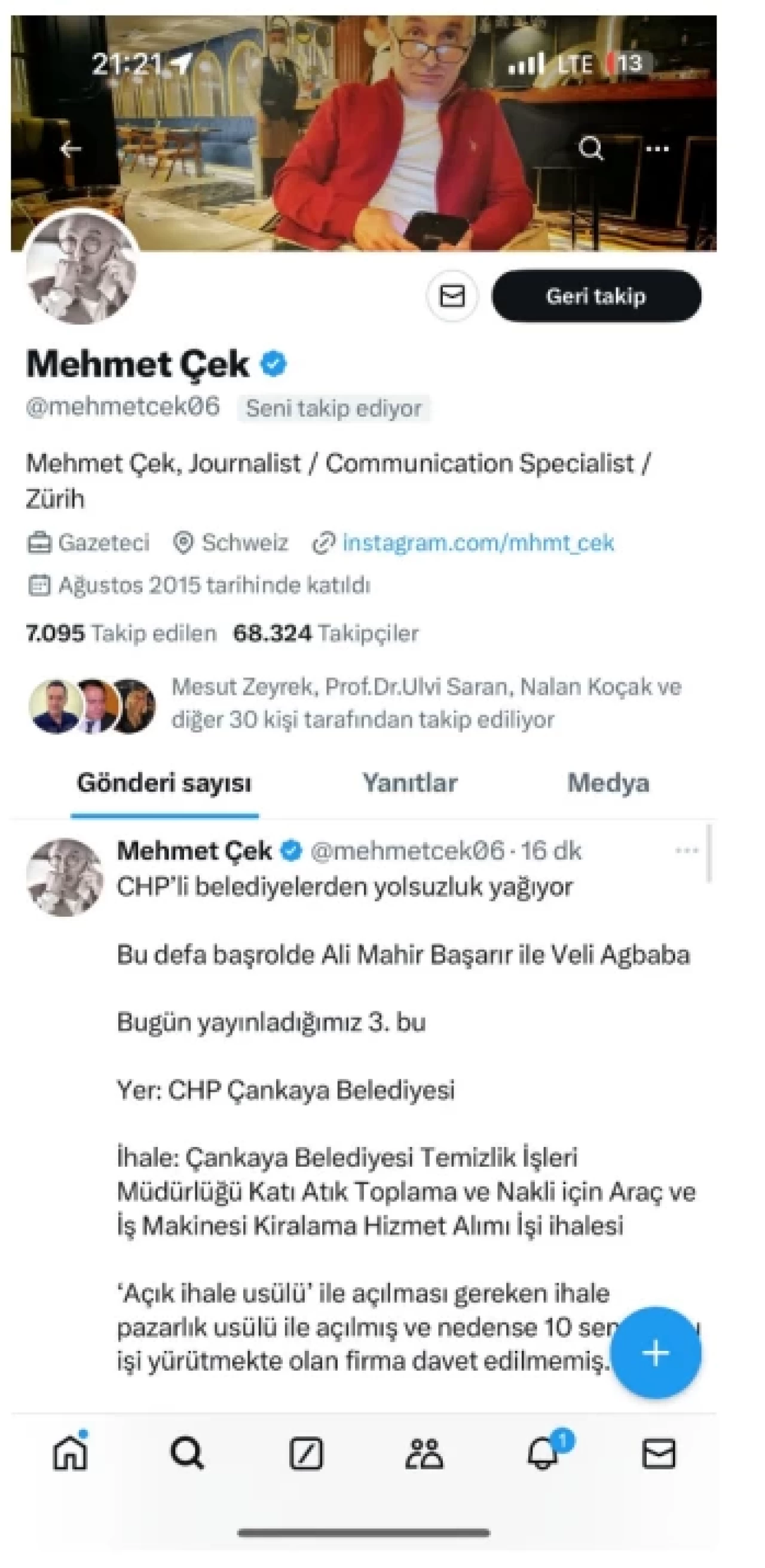 Mehmet Çek, hakkında açılan dava üzerine sosyal medya hesabından açıklamalarda bulundu. Çek, “CHP’li Ali Mahir Başarır ve Veli Ağbaba’nın adının geçtiği yolsuzluk iddiaları nedeniyle ifadeye çağrıldım. Şikayeti aldım, fakat ifade vermedim” dedi.