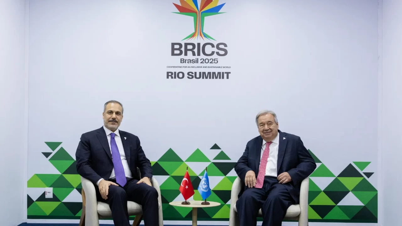 Dışişleri Bakanı Hakan Fidan, Brezilya'nın Rio de Janeiro kentinde düzenlenen BRICS Zirvesi marjında Birleşmiş Milletler (BM) Genel Sekreteri Antonio Guterres ile bir araya geldi.