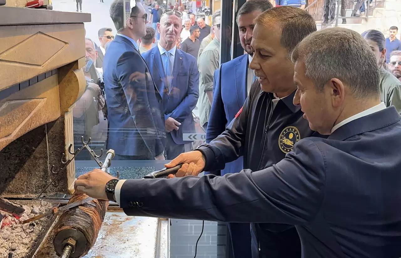Daha sonra İnönü Caddesi, Atapark ve Cami Meydanı'nda esnafı ziyaret eden Yerlikaya, bir lokantada cağ kebabı keserek gazetecilere ikram etti.