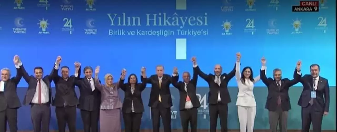 Cumhurbaşkanı Erdoğan, AK Parti'nin 24. Kuruluş Yıl Dönümü Programı'nda yaptığı açıklamada, "Türkiye Yüzyılı’nın inşası mücadelemize destek olmak amacıyla aramıza katılan tüm arkadaşlarımıza “Hoş geldiniz, sefalar getirdiniz.” diyor, hepsini muhabbetle bağrımıza basıyoruz. Birazdan rozetlerini takacağımız belediye başkanlarımızı canıgönülden tebrik ediyorum. Dünden beri ahlaksızca, haysiyetsizce, her türlü insani değeri ayaklar altına alan hoyrat bir üslupla AK Parti ailesinin yeni üyelerine saldıranlara “Hadi oradan.” diyorum.