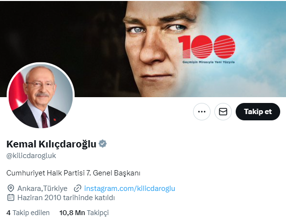 Sonuçların açıklanmasının ardından bir mesaj paylaşarak görevine veda eden Kılıçdaroğlu, sosyal medya hesabında bir değişikliğe gitti. Eski CHP lideri, X platformundaki profilinde yazan "Cumhuriyet Halk Partisi Genel Başkanı" ifadesini sildi. Kılıçdaroğlu, bunun yerine "Cumhuriyet Halk Partisi 7. Genel Başkanı" yazdı.