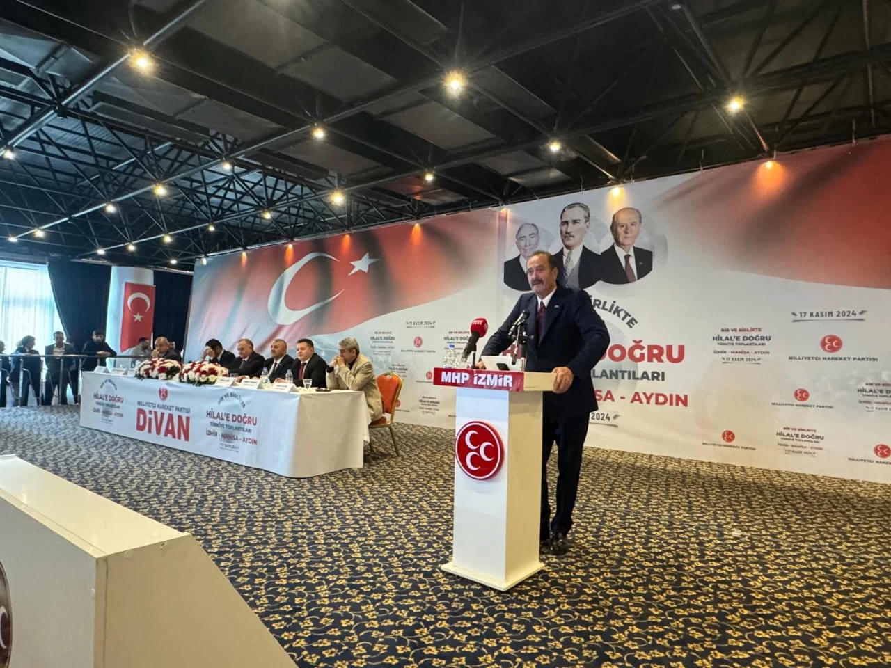 Saygıdeğer Divan Üyelerim, Kıymetli İl Başkanlarım, Değerli İlçe Başkanlarım, Milliyetçi Ülkücü Hareketin her biri kıymetli ve asalet timsali dava arkadaşlarım; hepiniz hoş geldiniz şeref verdiniz. İfade etmem gerekir ki; bugün burada sizlerle birlikte olmak, sizlerle birlikte aynı duaya “amin” demek, istikbalin ve istiklalin şehri İzmir’de siz değerli ülküdaşlarımla aynı irade etrafında bulunmanın övüncünü yaşıyorum. Kutalmışoğlu Süleyman Şah’ın Türklükle müşerref kıldığı, Aydınoğlu Mehmet Bey’in istikbaline Türk’ün silinmeyecek mührünü kazıdığı, Balta köylü Arşın Teyze’nin evlatları, giydiği zeybek elbisesiyle Yörük Ali Efe’ye silah arkadaşlığı yapan Çiftlikli Kübra’nın torunları, Aydınlı yiğit ülküdaşlarım, hoş geldiniz şeref verdiniz! Alpagı oğlu Saruhan Bey’in “Bismillah” diyerek silinmeyecek Türk asırlarını başlattığı, Fatih Sultan Mehmed’in piştiği, Kanuni Sultan Süleyman’ın yetiştiği ocak, Hareket-i Milliye’nin membaı, Bakırlı Saçlı Mustafa Efe’nin, Kulalı Mehmet Efe’nin, Bakırlı Ahmet Çavuş’un, Kabakçı Efe’nin evlatları Manisalı dava arkadaşlarım, hepiniz hoş geldiniz şeref verdiniz. Adalar Denizinde Türk’ün kudretli asırlarını başlatan Amiral Çaka Bey’in torunları, Timur Han’ın emanetinin yılmaz bekçileri, İstiklal Mücadelesinin ilk ve son kurşununun yurdu, istiklali istikballe buluşturan ruhun adresi, güzelliği için şiirler, özgürlüğü için destanlar yazdığımız, hemşerisi olmaktan kıvanç duyduğumuz Gazi Paşa’mız Mustafa Kemal Atatürk’ün bağımsızlık mücadelesinin kızıl elması İzmirli dava arkadaşlarım, hepiniz hoş geldiniz şeref verdiniz. Sözlerimin başında Liderimiz Sayın Devlet Bahçeli’nin her bir ülküdaşıma iletilmek üzere emanet ettiği selamını arz etmek isterim.