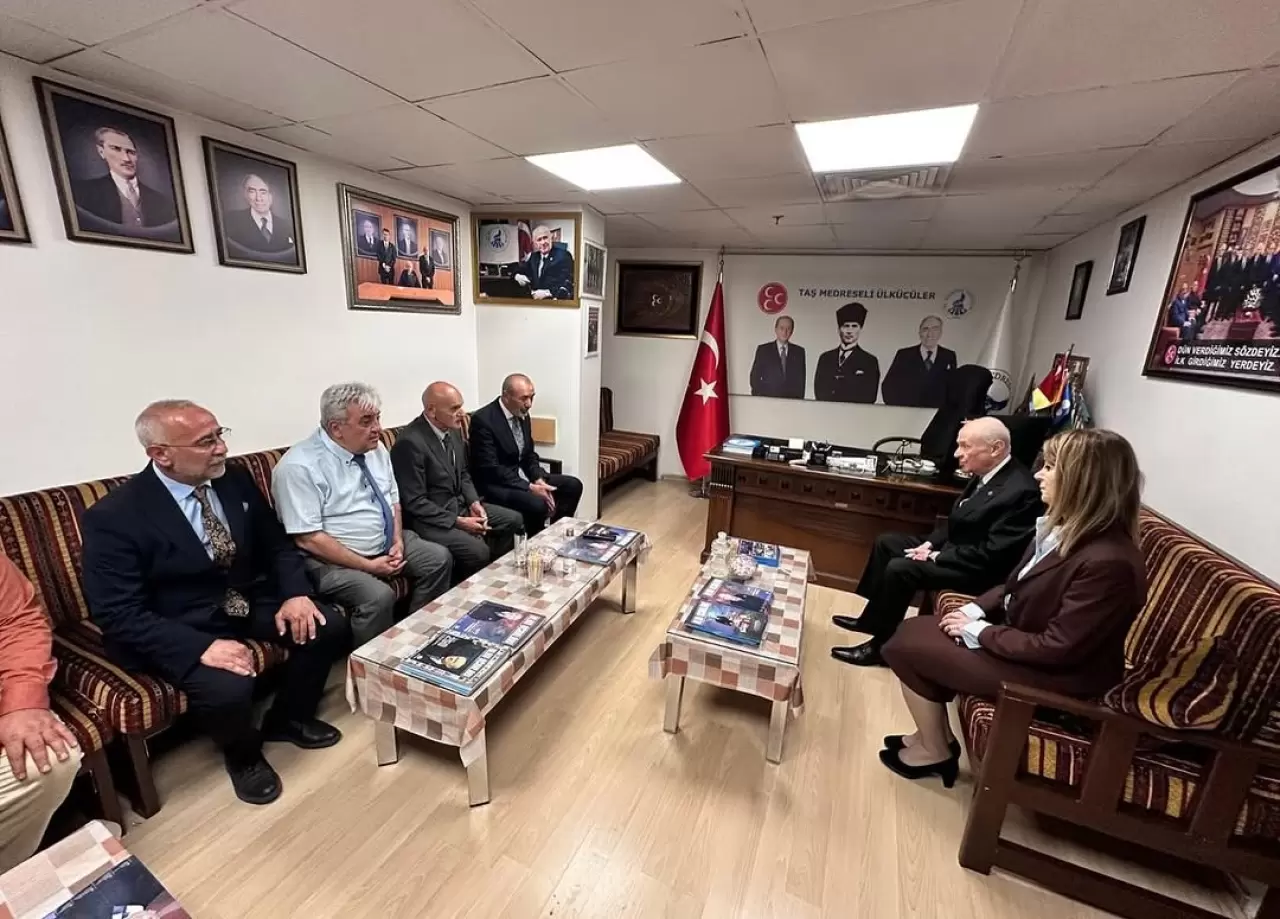 MHP’nin sosyal medya hesabından ziyarete ilişkin yapılan paylaşımda, "Genel Başkanımız Sayın Devlet Bahçeli beyefendi 12 Eylül münasebetiyle Taş Medreseli ülkücüleri ziyaret etti" ifadelerine yer verildi.