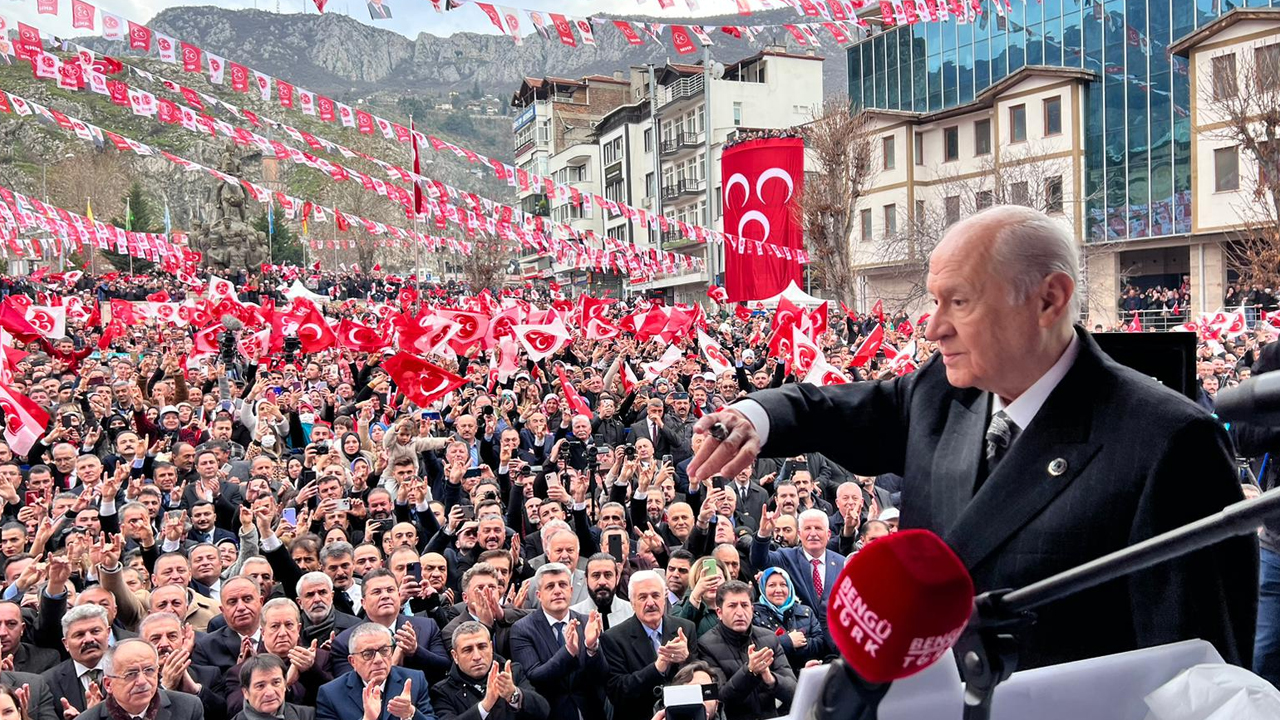 MHP Genel Başkanı Devlet Bahçeli, "Aziz Milletim Sıra Sende" mitinginde konuştu. 6'lı masanın ortakları CHP Genel Başkanı Kemal Kılıçdaroğlu ve İYİ Parti Genel Başkanı Meral Akşener'e tepki gösteren Bahçeli, "Kılıçdaroğlu Türkiye'nin karşısındaki mihraktır. Bölücülerle, teröristlerle aynı gemidedir. İP Başkanı PKK'ya yeşil ışık yakmıştır. Bunun adı demokrasi olamaz." dedi. 6'lı masanın Cumhurbaşkanı Erdoğan'ın yeniden adaylığına yönelik eleştirilerine yanıt veren Bahçeli, "6’lı masanın ortak açıklamasında Sayın Erdoğan’ın cumhurbaşkanı adaylığına vesayetçi anlayışla karşı çıkılmıştır. 6’lı ganyana bu aklı kim vermiş, hangi ülkenin büyükelçiliğinde kaleme alınmıştır." ifadelerini kullandı.