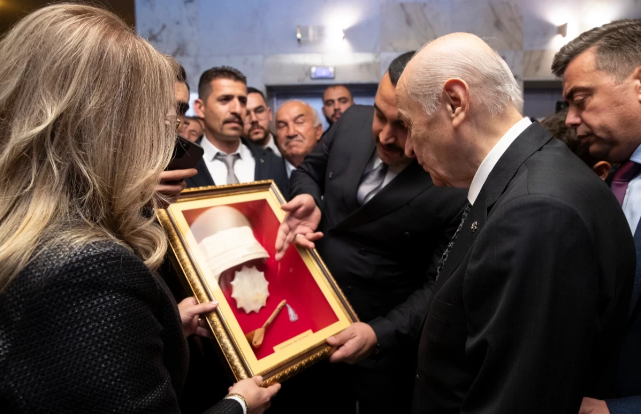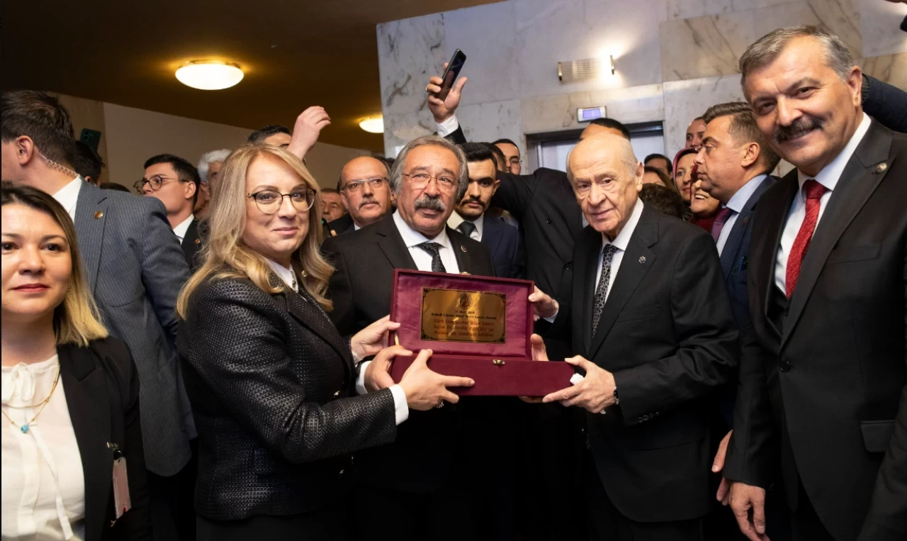 MHP Grup Başkanvekili Prof. Dr. Filiz Kılıç, Türkiye Büyük Millet Meclisi’nde yapılan grup toplantısının ardından, MHP Genel Başkanı Devlet Bahçeli’ye Nevşehir’in Avanos ilçesine ait altın kaplama bir anahtar hediye etti.