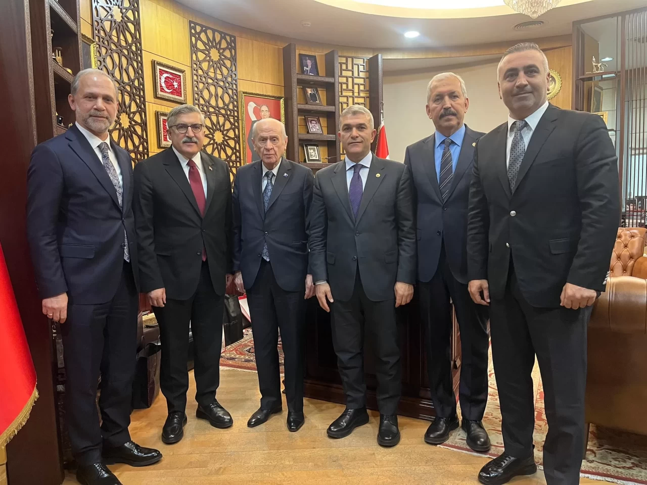 MHP Genel Başkanı Devlet Bahçeli, Hatay’dan milletvekillerini parti genel merkezinde kabul etti. Görüşmede MHP Hatay Milletvekili Lütfi Kaşıkçı ile AK Parti Hatay Milletvekilleri Abdulkadir Özel, Adem Yeşildal, Hüseyin Yayman ve Kemal Karahan yer aldı.