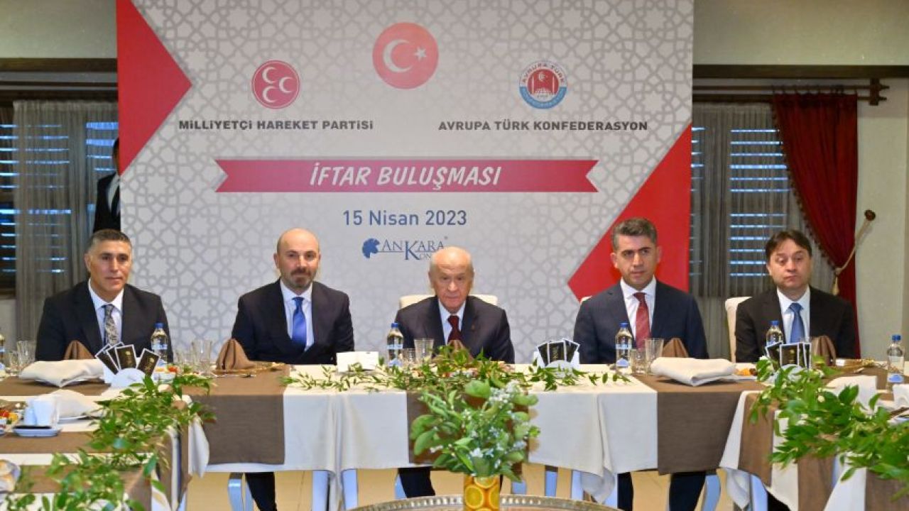 Milliyetçi Hareket Partisi Genel Başkanı Devlet Bahçeli bugün Avrupa Türk Konfederasyonu’na bağlı bulunan Federasyon başkanları ve yöneticileriyle 14 Mayıs 2023 seçim çalışmalarına istinaden Ankara Konağı’nda sohbet toplantısı ve iftar programına katıldı.