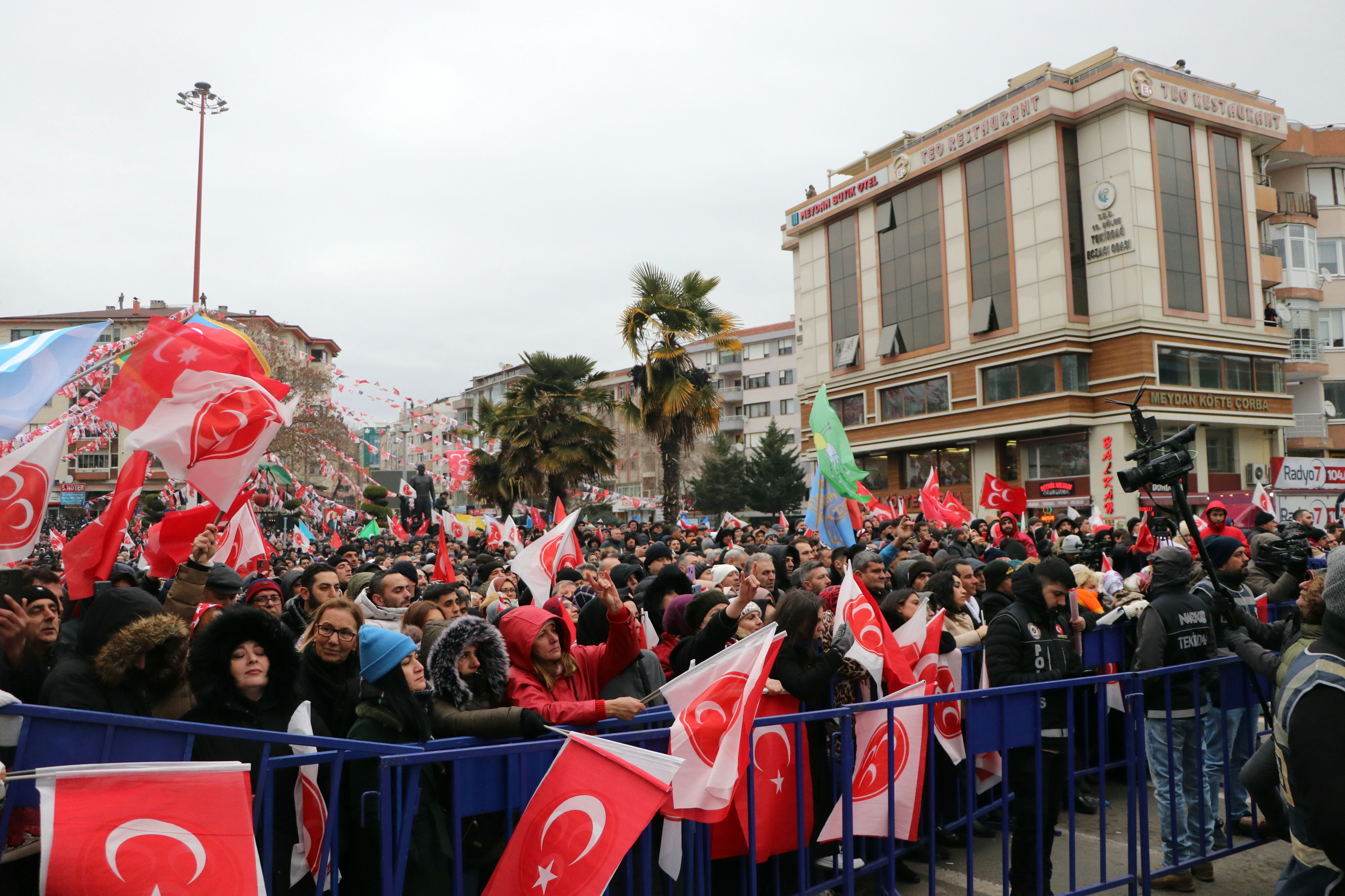 Bizim sevdamız Türk milleti, yeryüzü cennetimiz Türk vatanıdır.M2023 yılında hem Cumhuriyet’in 100’üncü yıl dönümünü kutlayacağız, hem de cumhurun demokrasi zaferine birlikte ulaşacağız. Cumhurla Cumhuriyet’in kucaklaşmasına şahit olacağız. Tekirdağlı kardeşlerim sıra sizlerde. Zillet ittifakı yanlışın ve yıkımın yanındadır. Zillet ittifakı yalanın ve yağmanın tarafındadır. Zillet ittifakı küresel emperyalizmin ileri karakolu ve Türkiye’nin karşı siperidir. Biz, Türkiye’nin, Türk milletinin, Tekirdağ’ın tarafıyız. Biz garibin, mazlumun, bağında, bahçesinde, bostanında ter dökenin, emek verenin yanındayız. Camideyiz, cemevindeyiz, duadayız, dilekteyiz, gönüldeyiz, kalpteyiz, Anadolu’nun her yerindeyiz. Caninin, eşkıyanın, bölücünün, demokrasi ve özgürlük kamuflajına bürünmüş düşman beslemelerinin de karşısındayız. Biz hakkın, halkın, hakikatin tarafıyız. Biz Milliyetçi Hareket Partisi’yiz. Onların çağrısı kavgaya ve kargaşaya, bizim çağrımız aydınlığa ve kardeşliğedir. Onların çağrısı kaos ve krize, bizim çağrımız birliğe, dirliğe ve hep birlikte Türkiye olmaya çağrıdır. Çağrımız büyük Türkiye’yedir. Çağrımız Türk ve Türkiye Yüzyılınadır.