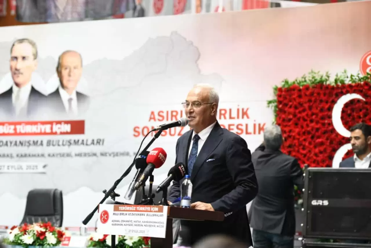 Milliyetçi Hareket Partisi (MHP) Adana İl Başkanı Yusuf Kanlı, “Terörsüz Türkiye İçin Millî Birlik ve Dayanışma Buluşmaları” kapsamında düzenlenen Adana toplantısında önemli açıklamalarda bulundu. Toplantıya Genel Başkan Yardımcıları, milletvekilleri, il ve ilçe başkanları, sivil toplum kuruluşları temsilcileri, şehit aileleri ve gaziler ile basın mensupları katıldı.