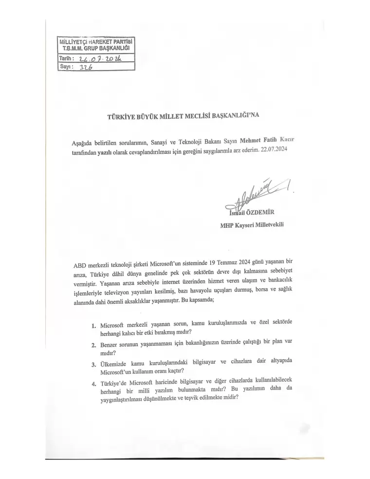 MHP’li Özdemir’in soru önergesi şu şekilde: