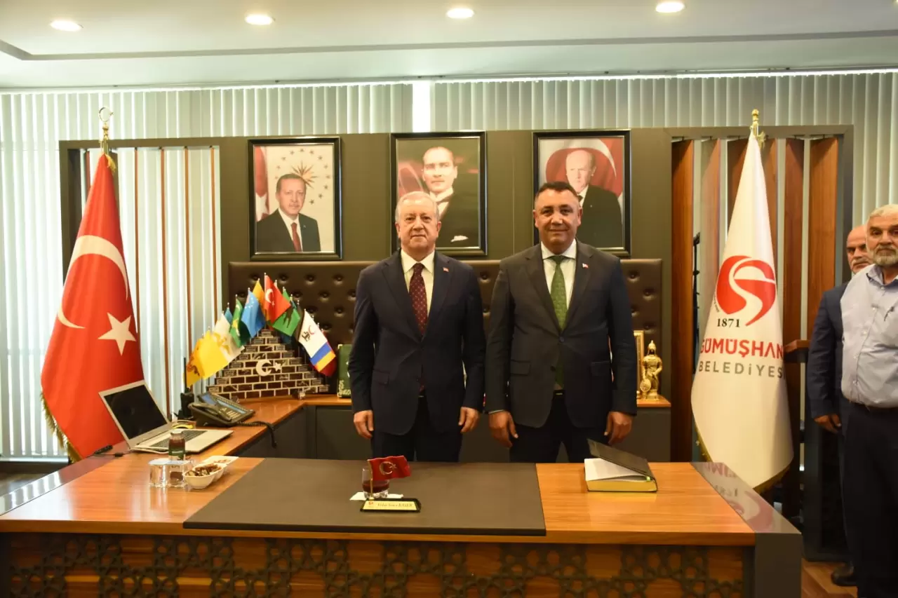 Belediye Başkanı Vedat Soner Başer, ziyaretten duyduğu memnuniyeti dile getirerek; “Milliyetçi Hareket Partisi Genel Başkan Yardımcımız Sayın Sadir Durmaz Bey’in şehrimize ve belediyemize ziyaretlerinden dolayı şahsım, belediyemiz ve Gümüşhaneli hemşehrilerim adına kendilerine şükranlarımı arz ediyor, hoş geldiniz diyorum. Sayın Genel Başkan Yardımcımızın Gümüşhane’yi ve belediyemizi ziyareti bizlere onur verdi. Kendilerini burada ağırlamaktan dolayı mutlu olduğumuzu ifade etmek istiyorum. Gümüşhane Belediyesi olarak memleketimize karşı çok büyük sorumluluklarımız var. Bu bağlamda partimize ve saygıdeğer Genel Başkanımız Sayın Devlet Bahçeli Bey’e yaraşır ve yakışır hizmetler yapmaya çalışıyoruz. Bu anlamlı ziyaretlerinden dolayı bir kez daha şahsım ve tüm hemşehrilerimiz adına Genel Başkan Yardımcımız Sayın Sadir Durmaz Bey’e çok teşekkür ediyorum.” ifadelerini kullandı.