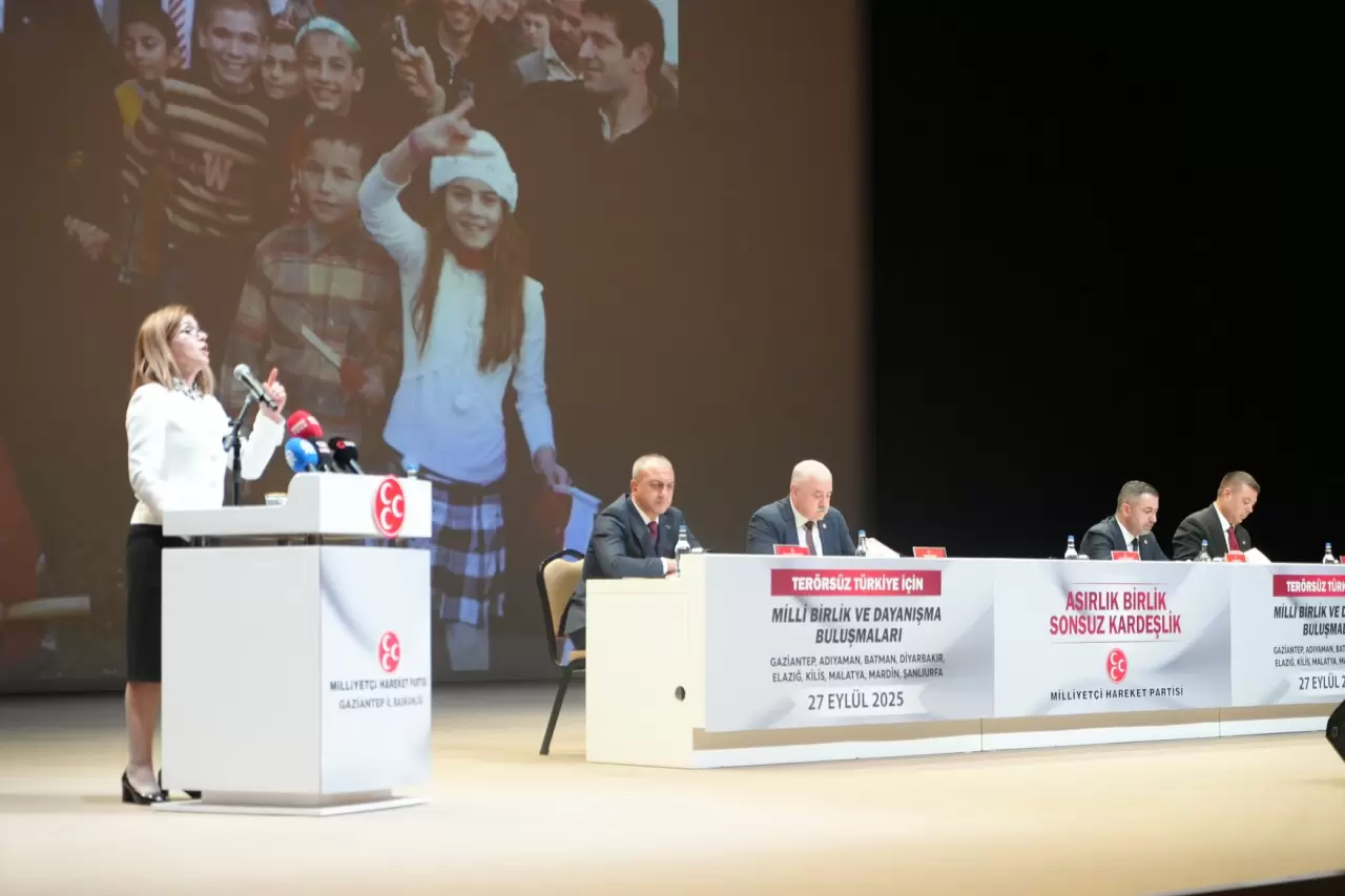 Milliyetçi Hareket Partisi (MHP) Genel Başkan Yardımcısı Prof. Dr. Zühal Topcu, “Terörsüz Türkiye için Millî Birlik ve Dayanışma Buluşmaları — Asırlık Birlik Sonsuz Kardeşlik” temalı Gaziantep bölge toplantısında kapsamlı bir konuşma yaptı. Topcu, partisinin Terörsüz Türkiye başlığı altındaki çalışmalarını anlatarak bölgesel ve ulusal birlik vurgusu yaptı.