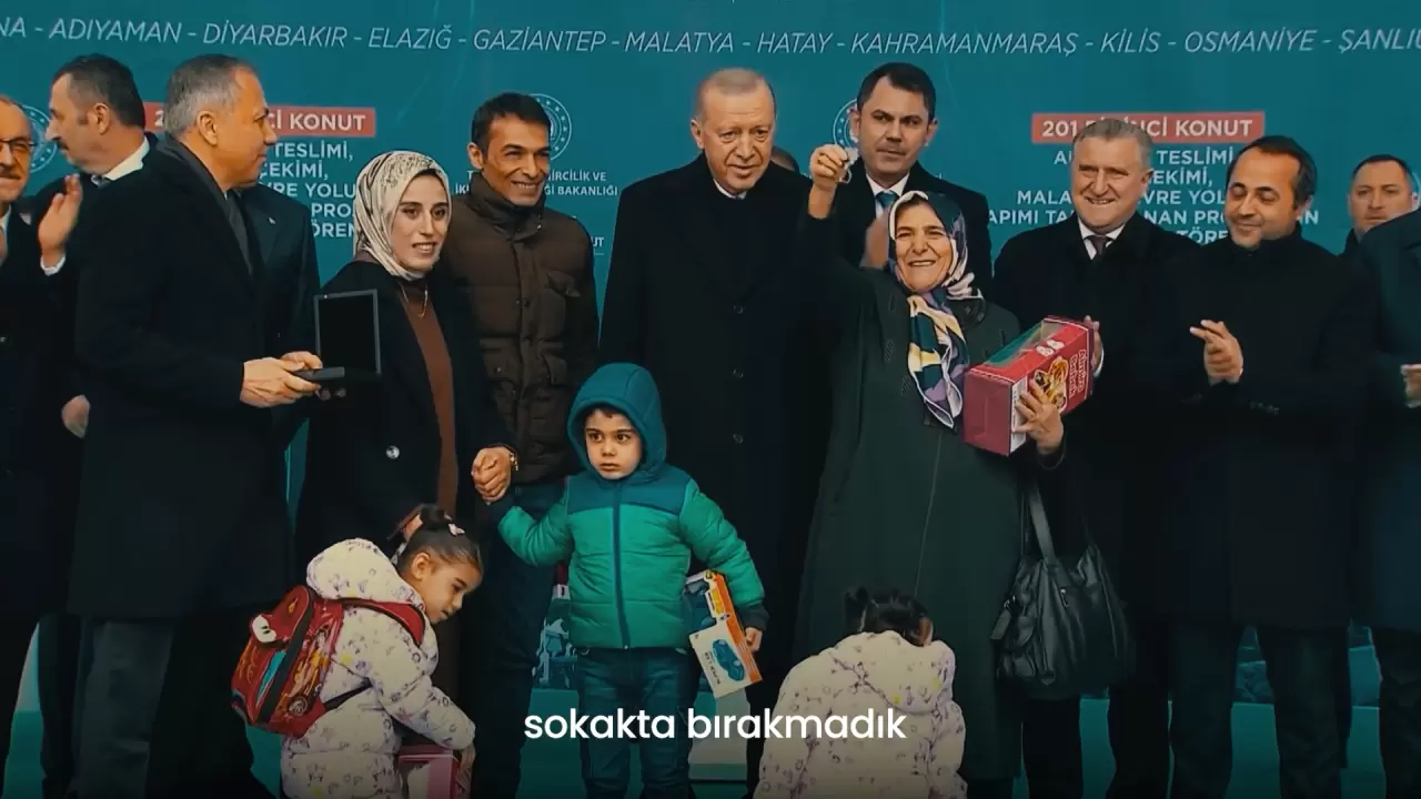 Filmde ayrıca Cumhurbaşkanı Recep Tayyip Erdoğan’ın depremzedelere yönelik daha önce yaptığı, “Bize güvenin, bize inanın. Biz vatandaşımızı darda, yoklukta, sokakta bırakmadık ve bırakmayız” sözlerine de yer verildi.