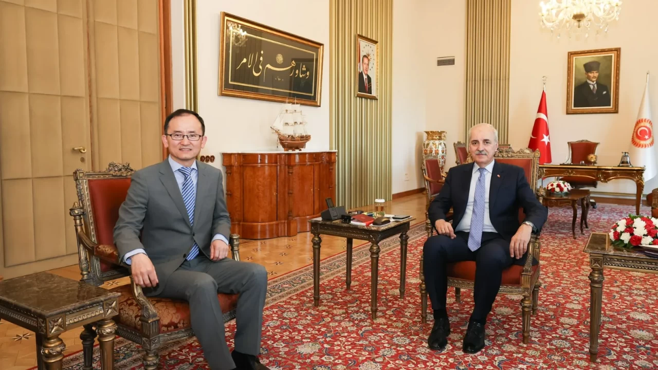 TBMM Başkanı Numan Kurtulmuş, Çin Halk Cumhuriyeti Ankara Büyükelçisi Jiang Xuebin'i kabul etti.