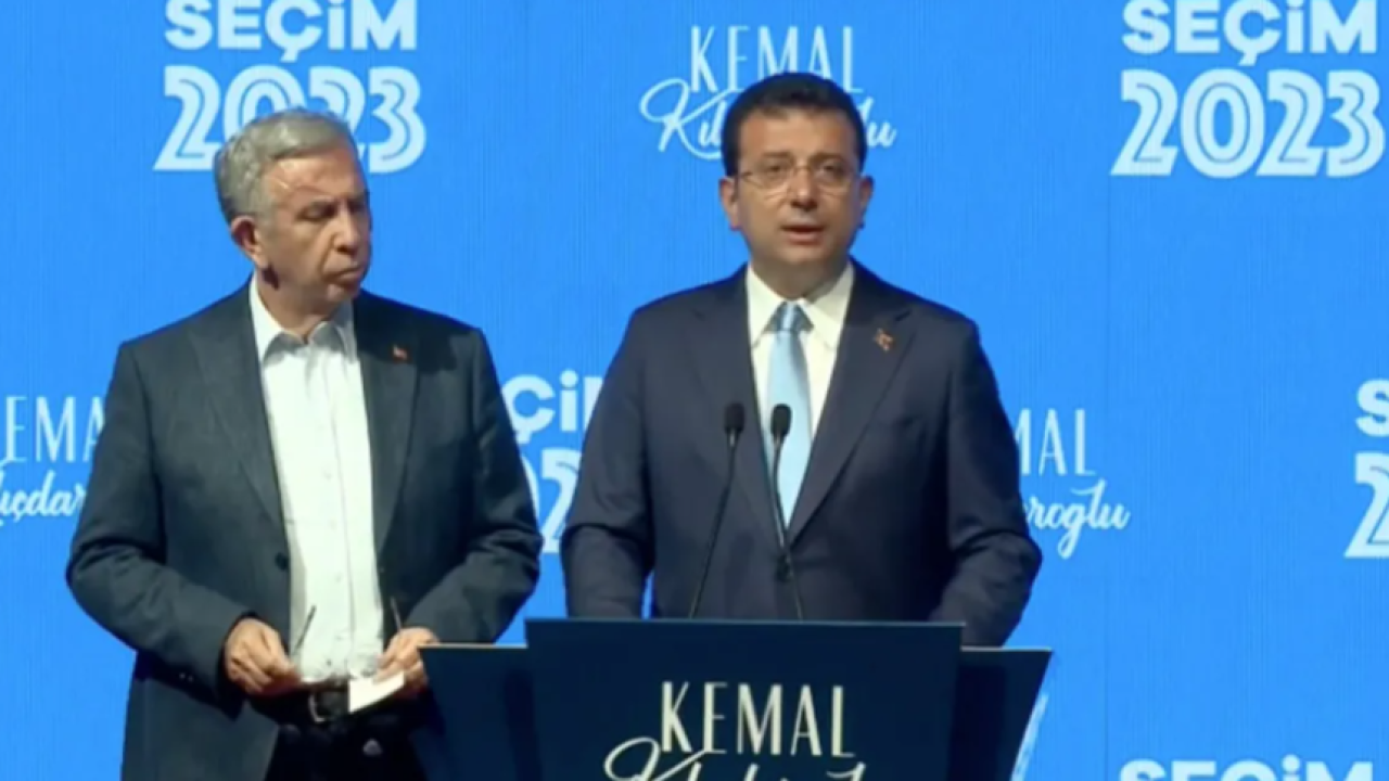 İmamoğlu, ellerindeki verilerle ilgili bir oran vermedi. Daha sonra konuşan ABB Başkanı Mansur Yavaş da, "Kılıçdaroğlu elimizdeki verilere göre öndedir" dedi ancak o da herhangi bir oran açıklamadı.