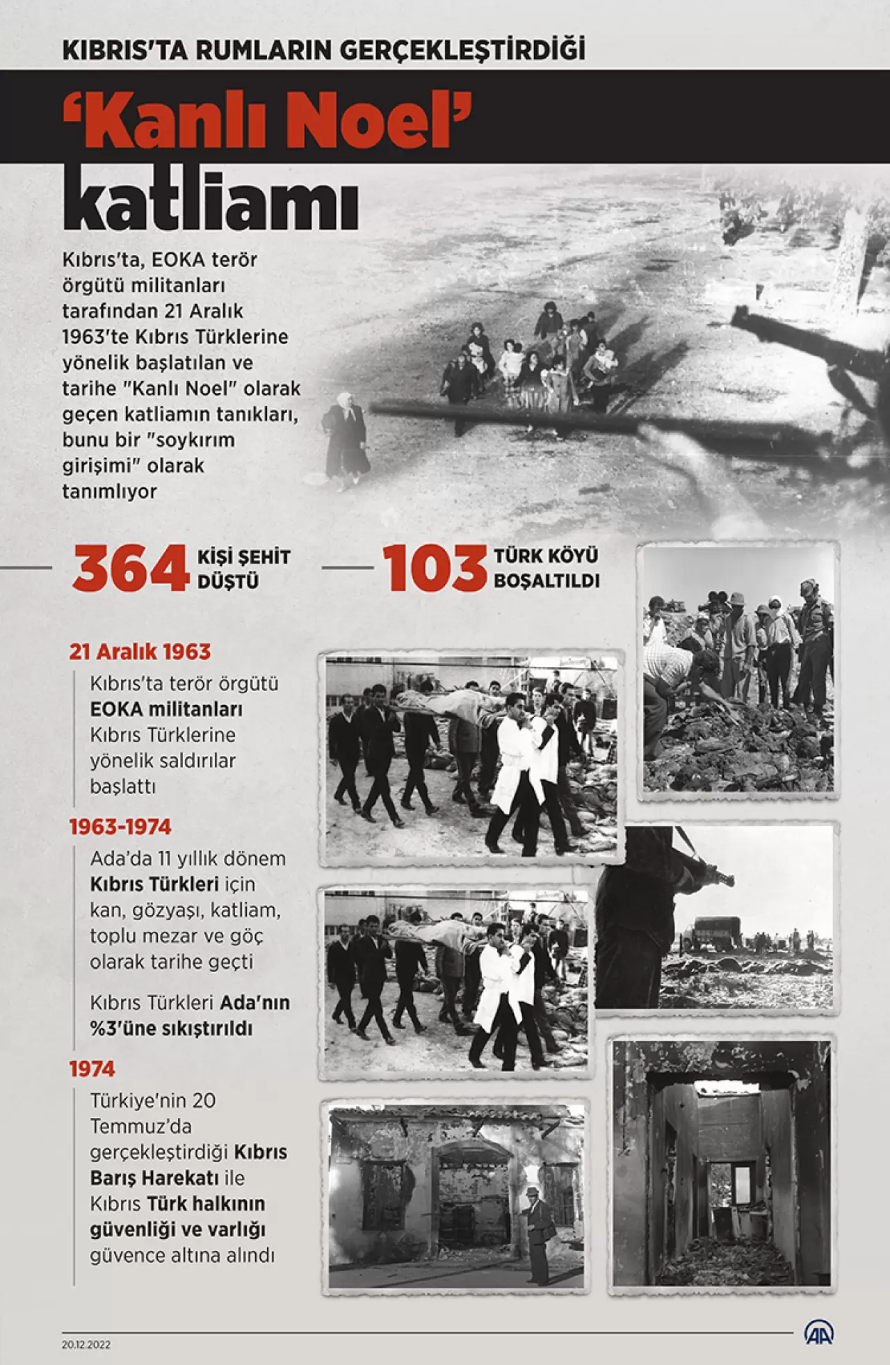 Rumların 21 Aralık 1963'te Kıbrıs Türklerine karşı başlattığı, 364 kişinin şehit düşmesi ve 103 Türk köyünün boşaltılması ile sonuçlanan saldırılar silsilesi Ada'daki 2 toplum arası çatışmaların başlangıcı olarak kabul görüyor.