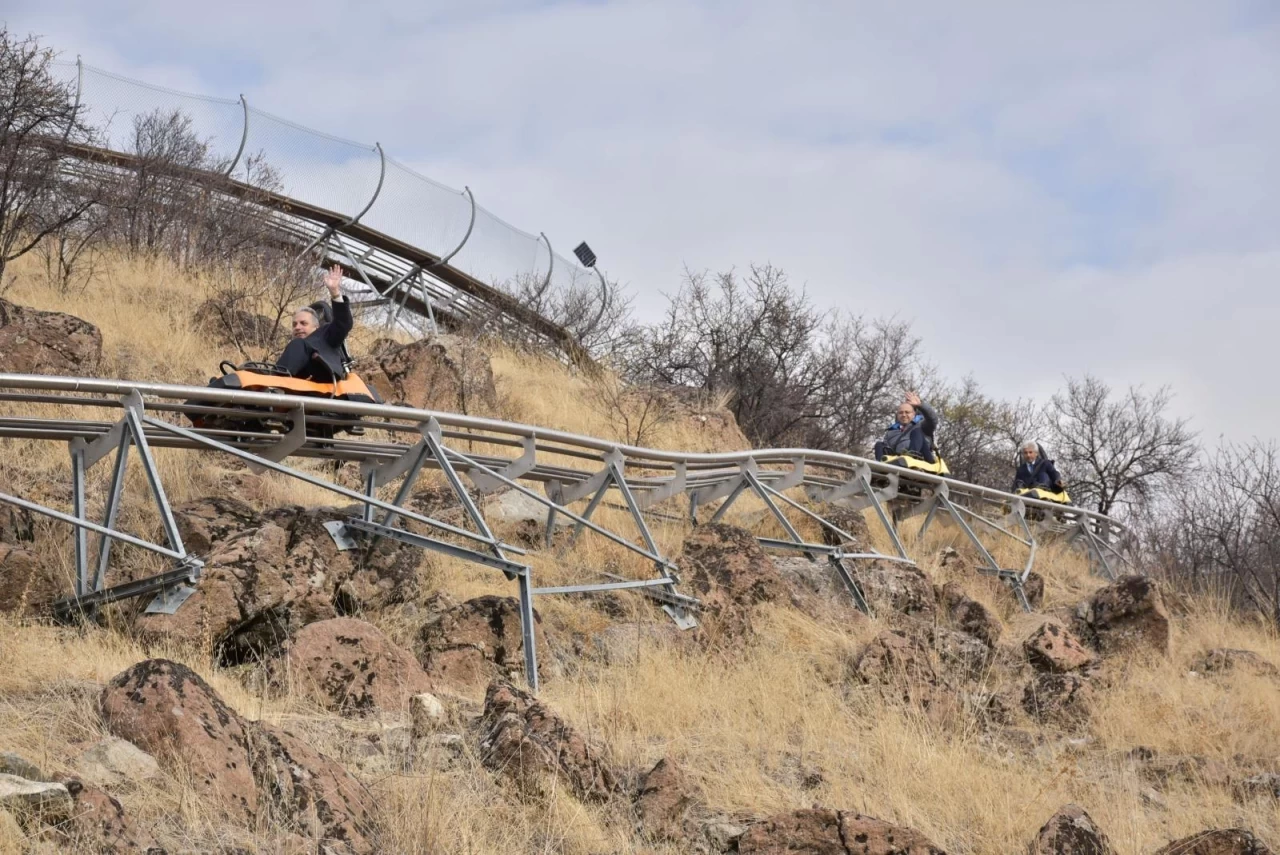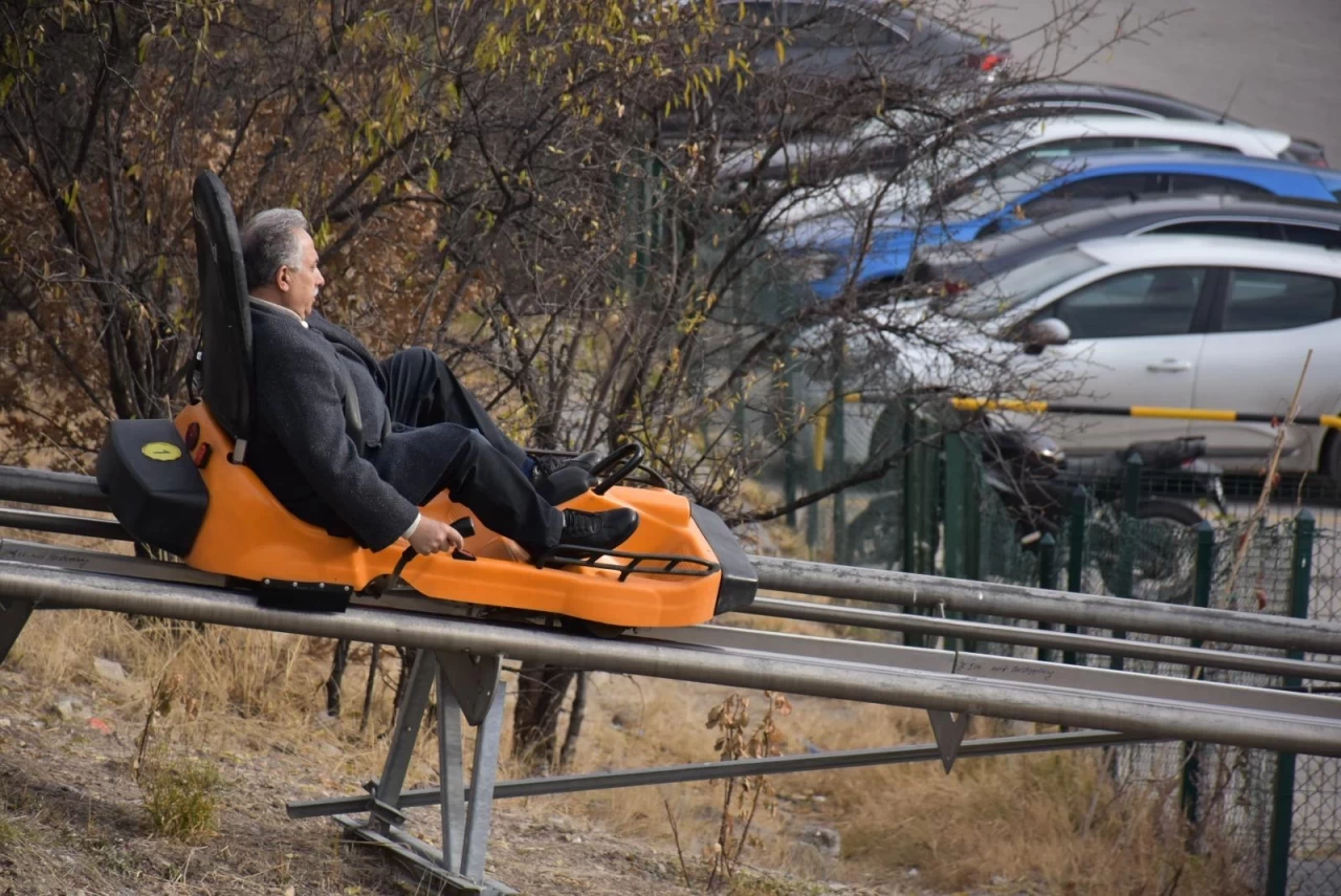 Ankara’nın Keçiören ilçesinde bulunan dağ kızağı parkurunu inceleyen Başkan Yalçın ve beraberindekiler, yetkililerden bilgiler aldı. Başkan Yalçın ve beraberindeki heyet daha sonra kızağa binerek parkuru test etti.