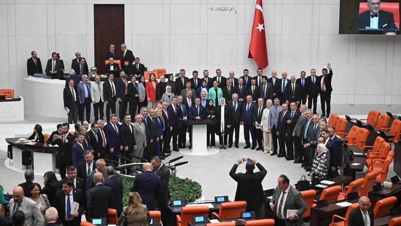 Milletvekilleri, kurul sonunda hatıra fotoğrafı çektirdi.