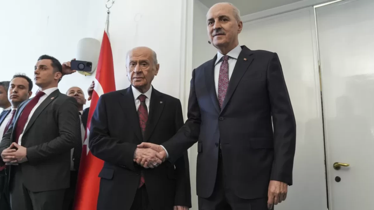 Kurtulmuş'a, açıklamaları sırasında MHP Genel Başkanı Bahçeli de eşlik etti.