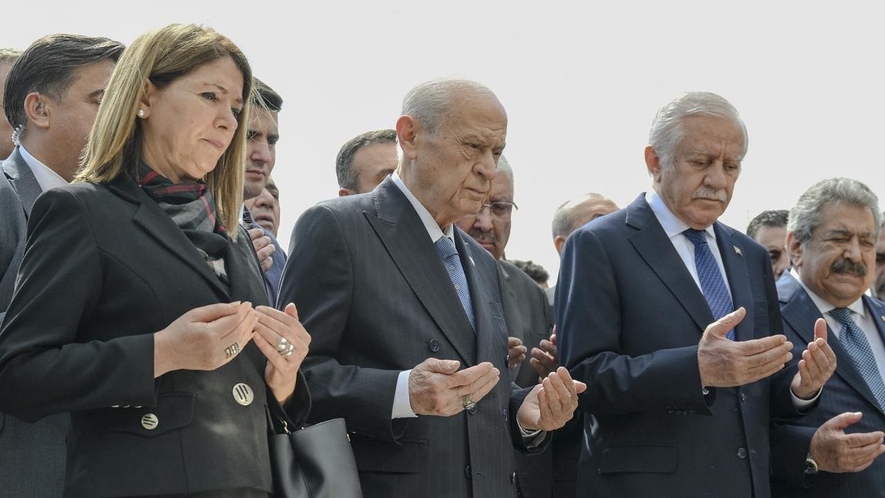 Bahçeli, Kur'an-ı Kerim tilavetinin ardından dua ederek, şehit isimlerinin yazılı olduğu alana karanfil bıraktı.