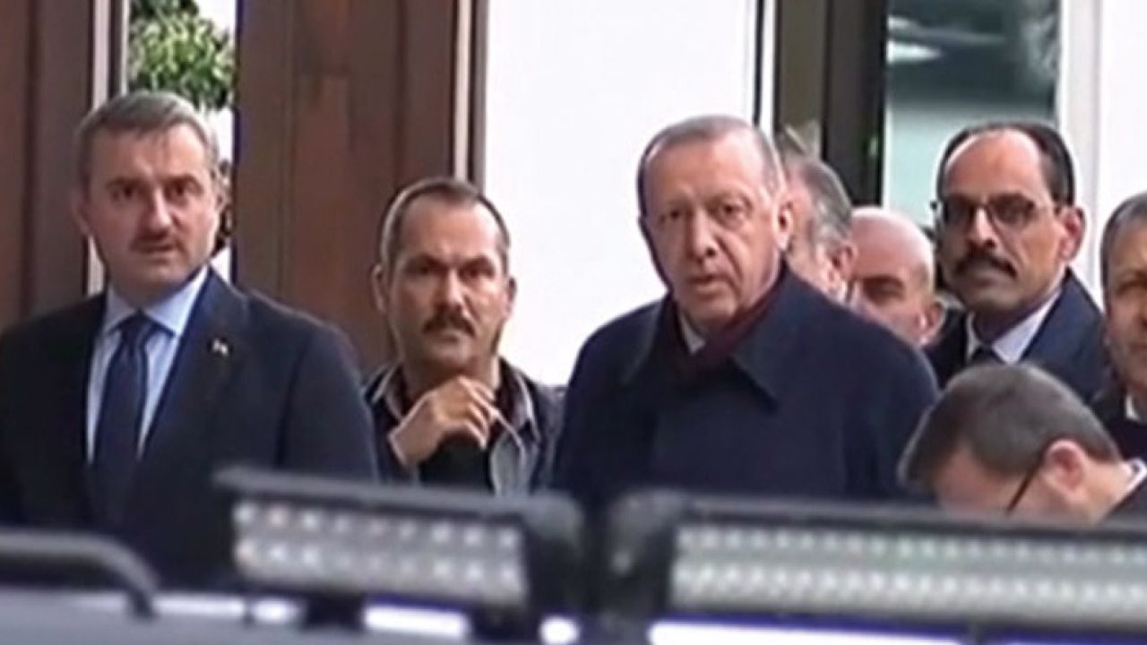 Erdoğan'a, İletişim Başkanı Fahrettin Altun, Cumhurbaşkanlığı Sözcüsü İbrahim Kalın, İstanbul Valisi Ali Yerlikaya, İstanbul Emniyet Müdürü Mustafa Çalışkan, AK Parti İstanbul Milletvekili Akif Çağatay Kılıç ve AK Parti İstanbul İl Başkanı Bayram Şenocak eşlik etti.