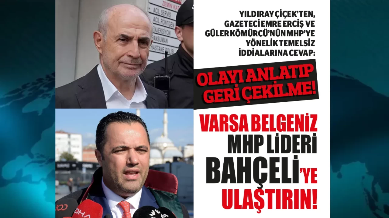 Geçtiğimiz günlerde sosyal medya hesabından MHP’yi hedef alarak, bazı MHP’li avukatların Büyükçekmece yat limanında, tutuklu Büyükçekmece Belediye Başkanı Hasan Akgün’ün kardeşi ile buluştuğunu, Akgün’ü çıkarmak için pazarlık yaptıkları iddiasını ortaya atan gazeteci Emre Erciş’e ve başka bir konuda benzer açıklamalarda bulunan gazeteci Güler Kömürcü'ye karşı Yıldıray Çiçek sert bir yazı kaleme aldı.