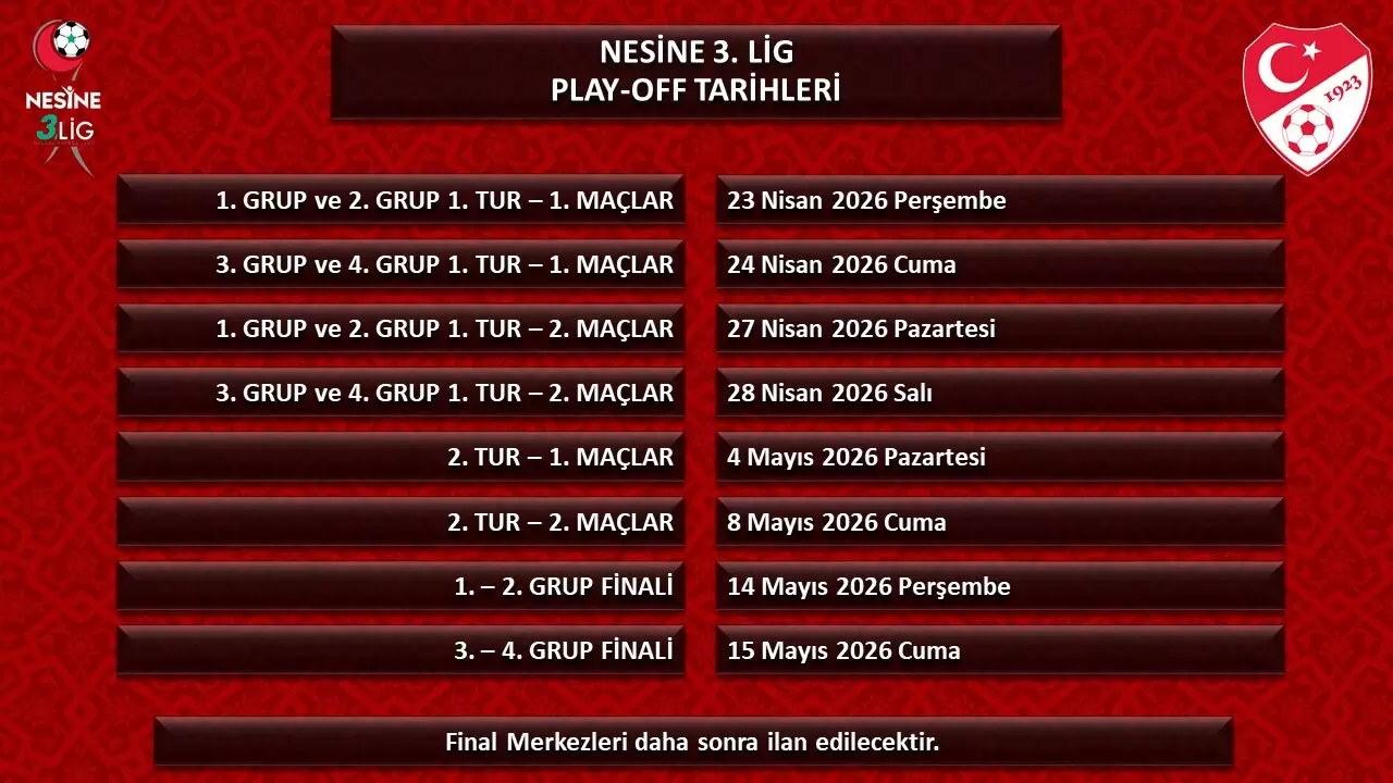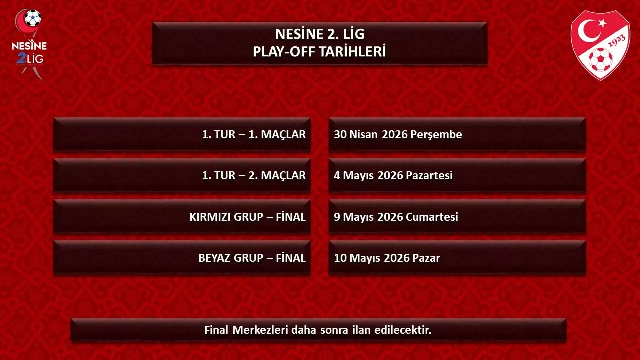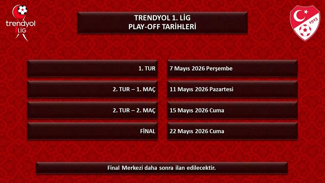 Trendyol 1. Lig, 2. Lig ve 3. Lig’de play-off tarihleri belli oldu. Türkiye Futbol Federasyonu (TFF), yaptığı açıklamayla üç ligde oynanacak play-off maçlarının takvimini duyurdu.