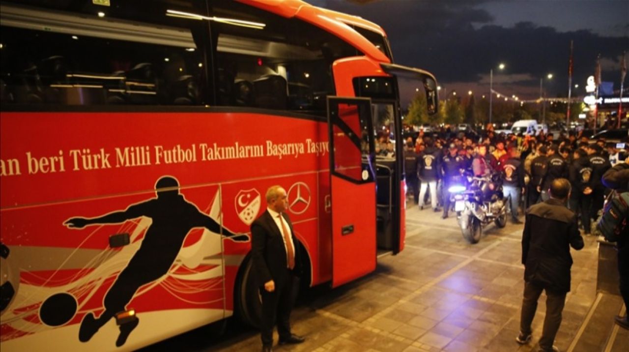 İlk kez milli maç heyecanının yaşanacağı kente gelen kafile, Diyarbakır Havalimanı'ndan güvenlik önlemleri altında otobüsle konaklayacağı otele geçti.