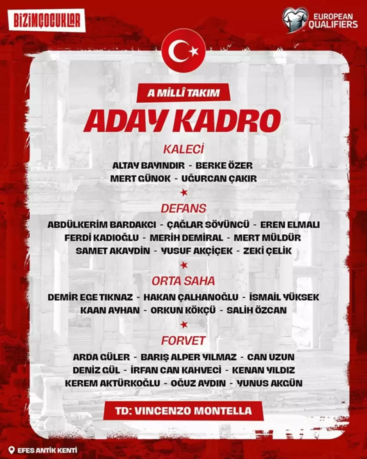 A Millî Takımımızın, Gürcistan ve İspanya ile oynayacağı maçların aday kadrosu açıklandı.