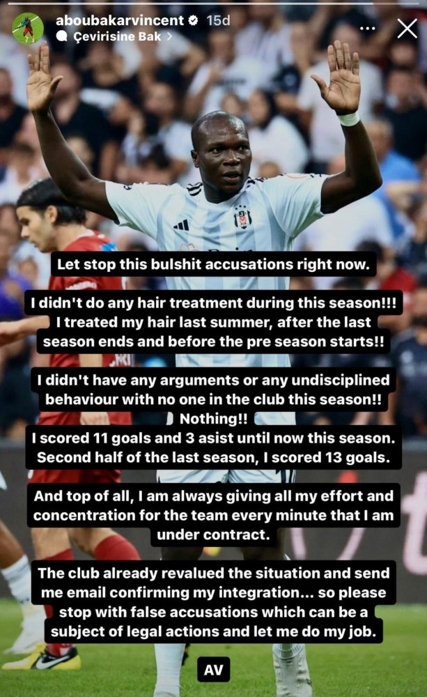 Beşiktaş'ın kadro dışı bıraktığı Vincent Aboubakar sosyal medya hesabından kendisi hakkında yapılan haberler hakkında açıklama yaptı.