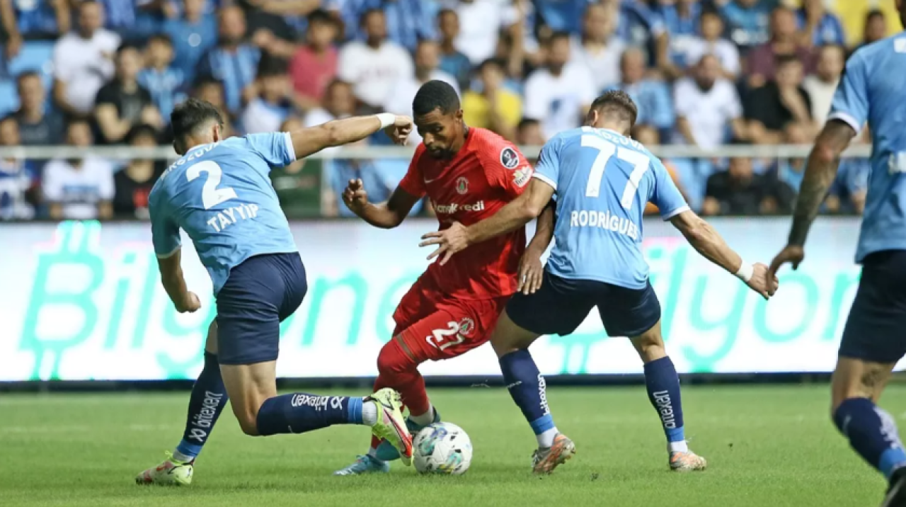 6. dakikada Adana Demirspor öne geçti. Ndiaye'in pasında topla buluşan Kevin Rodrigues'in ceza yayının gerisinden sol ayağıyla çektiği sert şutta meşin yuvarlak, müdahale etmek için yatan kaleci Serkan Kırıntılı'nın hemen önünde yerden sekerek ağlarla buluştu: 1-0
