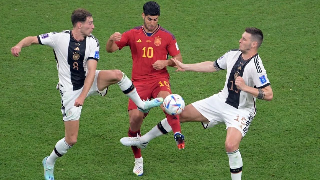 Al Bayt Stadyumu'nda oynanan mücadeledenin ilk yarısında İspanya daha iyi bir oyun ortaya koydu ancak gol sesi çıkmadı. Almanya'nın 40. dakikada Rüdiger'in kafasında bulduğu gol ise ofsayt gerekçesiyle değer kazanmadı.
