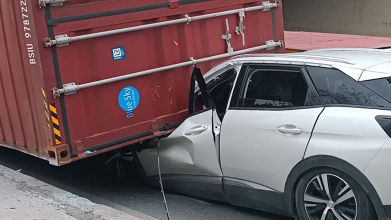 Bakırköy'de TIR'ın dorsesi üst geçide çarptıktan Anadolu Efes'te oynayan Bryant Dunston'ın kullandığı otomobilin üzerine devrildi.