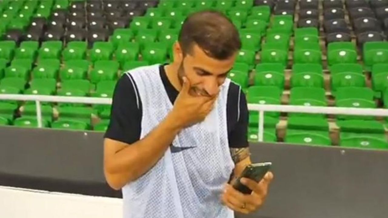 ?? Futbolcumuz Abdülaziz Solmaz idman sırasında gelen telefon ile baba olduğunu öğrendi.