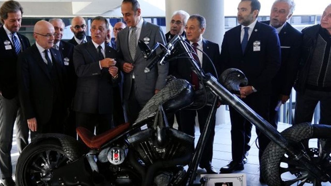 Beşiktaş Kulübü Başkanı Ahmet Nur Çebi, bir süre önce hayatını kaybeden siyah-beyazlı taraftar Cüneyt Doğruer'in özel üretim motosikletini, Beşiktaş Müzesi adına devraldı.
