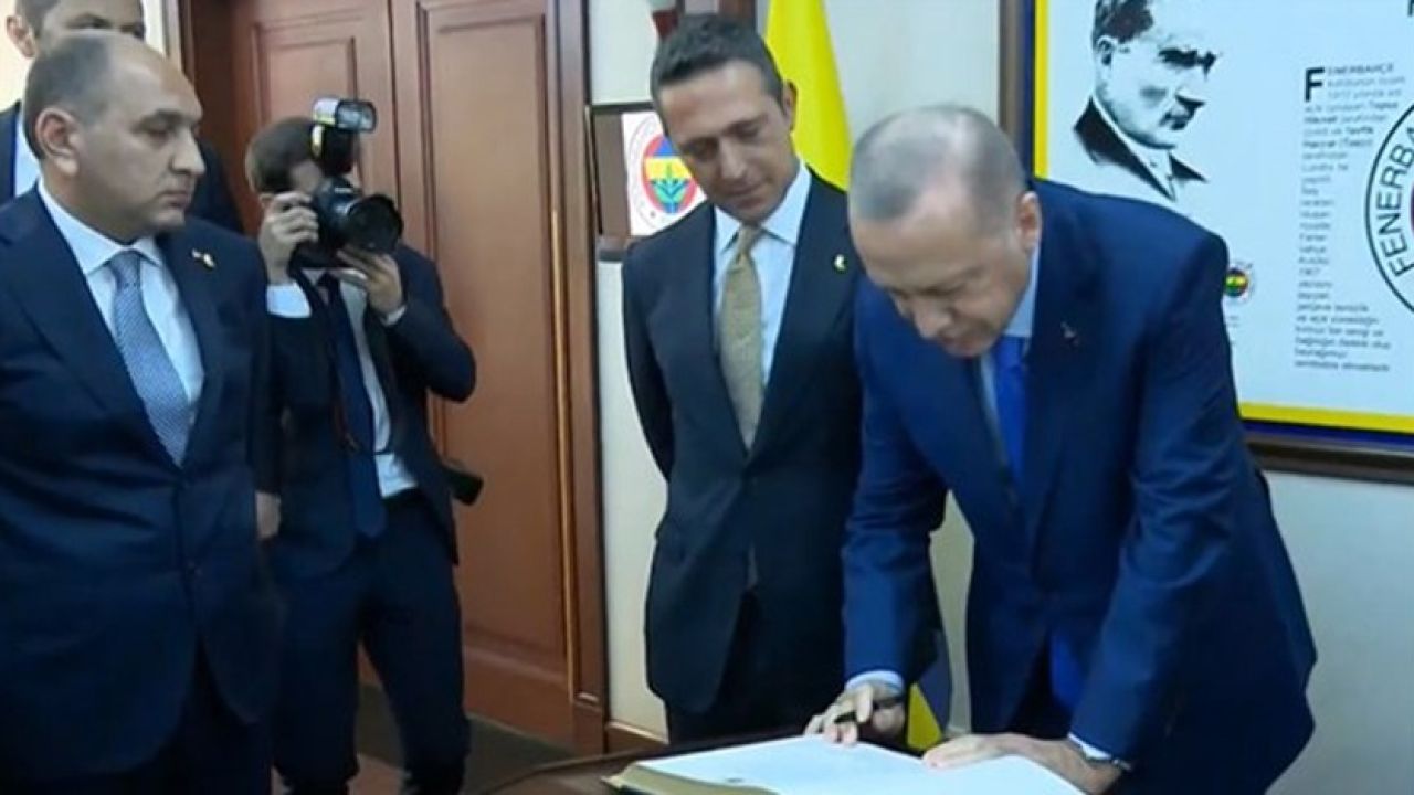 Cumhurbaşkanı Recep Tayyip Erdoğan, Fenerbahçe Kulübü'nün özel anı defterini imzaladı.
